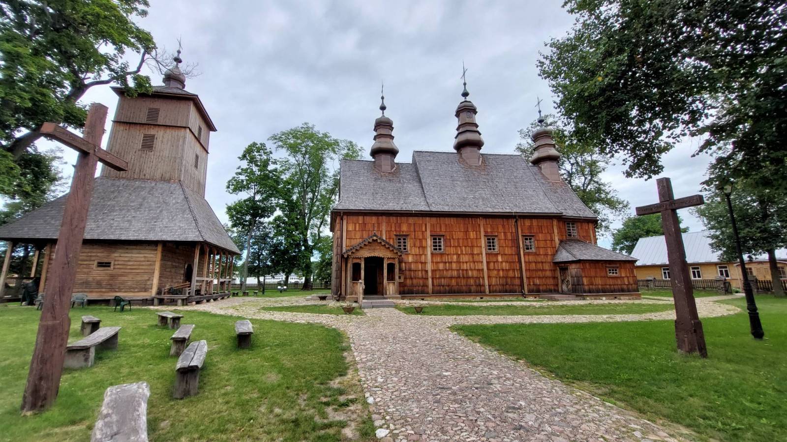 Rano pakowanie, śniadanie i wyjazd. Sprawnie docieramy do Włodawy. Po drodze zatrzymujemy się w byłym niemieckim obozie zagłady w Sobiborze, ale jeszcze trwał remont i wszystko było zamknięte. We Włodawie oglądamy cerkiew Narodzenia NMP i kościół św. Ludwika. Na rynku kawa i ciacho a potem w dalszą drogę. Po drodze ładna miejscowość Hanna z kościołem drewnianym pw. Apostołów Piotra i Pawła, Sławatycze z cerkwią opieki Matki Bożej i Kodeń z cerkwią św. Ducha i sanktuarium Matki Bożej Kodeńskiej. Po dłuższej przerwie ruszamy do Terespola gdzie robimy zakupy na wieczór i śniadanie dnia następnego a następnie jedziemy do Krzeczowa nad Bugiem ,gdzie mamy kolejny nocleg.