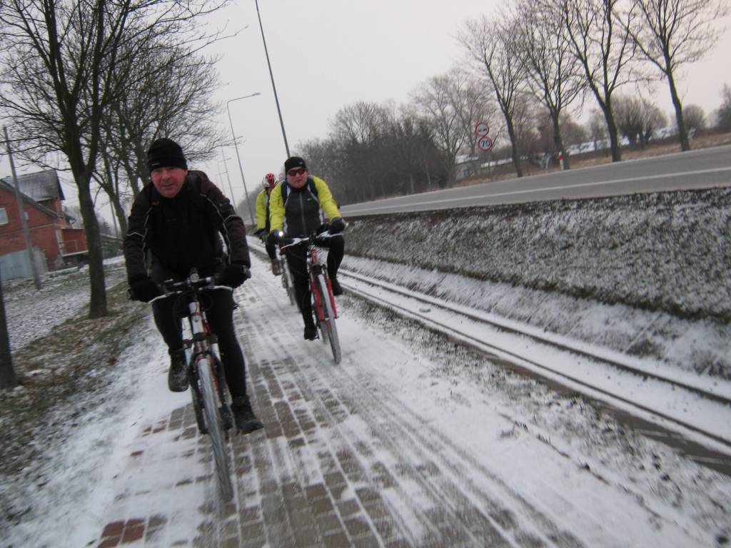 Grudnia wycieczka pod hasłem "Grudniowe pączki". Cel naszej wycieczki to cukiernia "Jędruś" w Nowym Stawie. Spodziewałem się więcej białego podłoża, no ale nie można mieć wszystkiego. Pogoda dopisała i kompani również. Dla mnie wprawionych bikerów polecam szlak w okresie letnim, bardziej wprawionym trasa jest całoroczna :-).