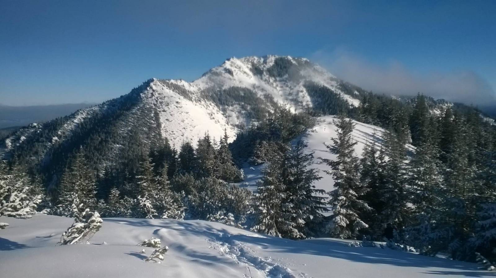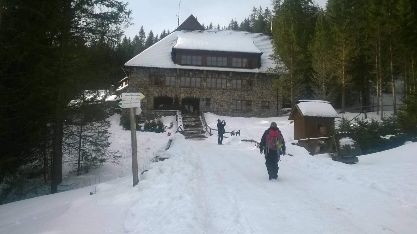 Było jeszcze przed feriami i w tygodniu a więc w schronisku pustki. pogoda 15.01.2015 jak marzenie. Weszliśmy na Grzesia w rakietach śnieżnych. Widoki wspaniałe. Dzień wcześniej po dojściu do schroniska wybraliśmy się obejrzeć dziwnie odpustowy kamień pamiątkowy na cześć wizyty w dolinie JPII. Mam wrażenie że gdyby go widział to by pomysłodawców jego przystrojenia wyśmiał.