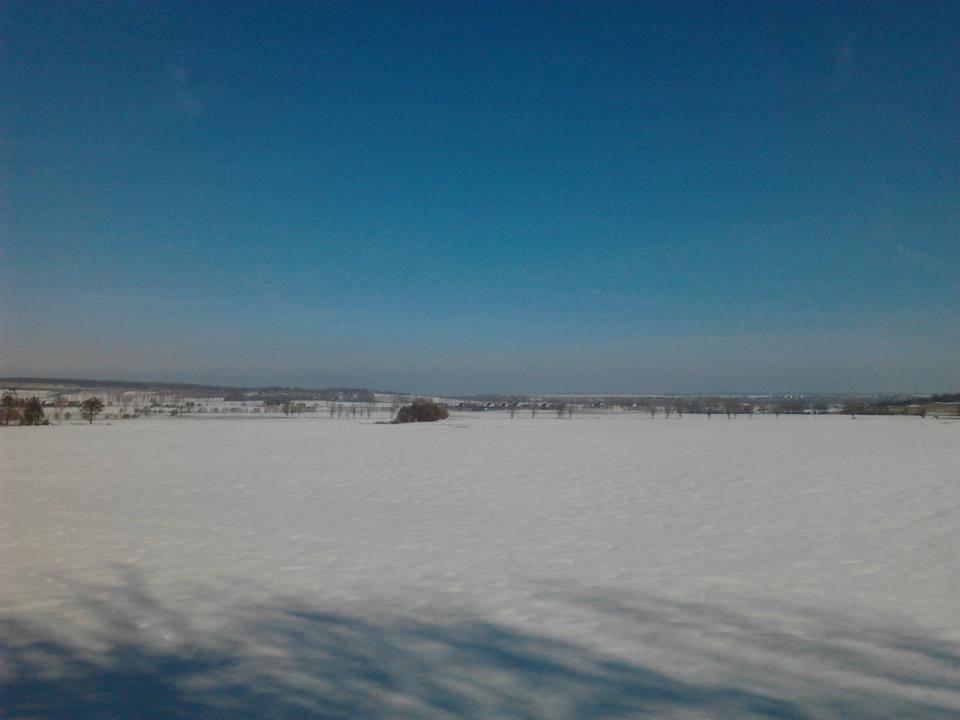 O wyjeździe poinformował mnie Jarek 2 dni wcześniej. Punkt 10:00 zjawiam się na skrzyżowaniu. Bożena z Jarkiem już tam czekają. Po kilku minutach zjawiają się też Piotrek, Ania i Grzesiek. W takim oto składzie ruszamy przy pięknym słońcu na południe. Tym razem zamontowałem błotniki i pierwsza szutrówka poszła dobrze. Za zalewem pierwszy śnieg, po którym jechało się jak na Przełęcz Karkonoską. I za Męcinką kolejna nieczysta jazda. Śnieg, błoto, kałuże... Przemoczyłem buty i odtąd jechało się źle. Wiatr wysuszył je, ale tym samym wychłodził mi stopy.