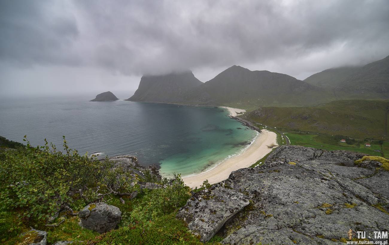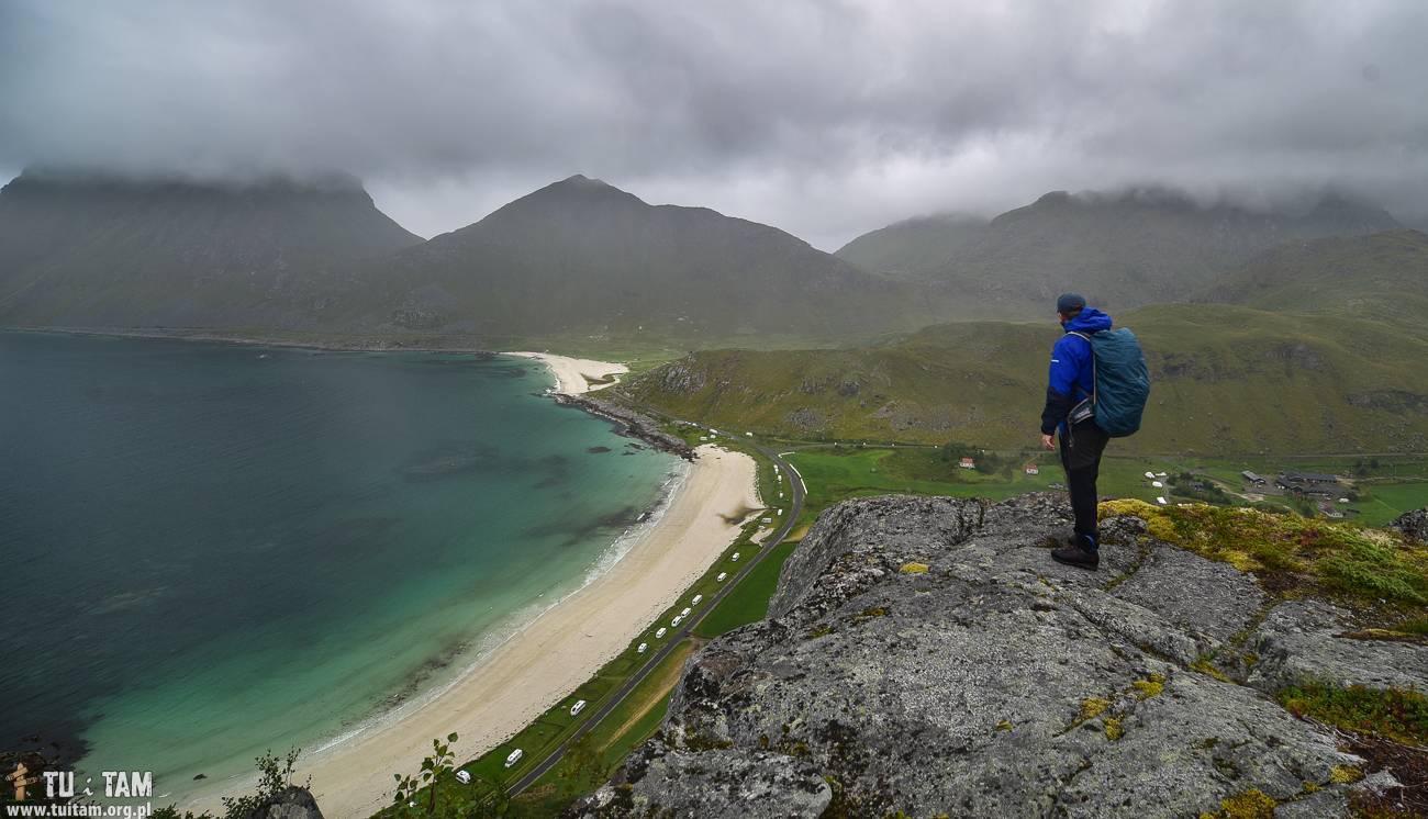 Holandsmelen - szczyt z pięknym widokiem na plażę Hauklandstranda i Vik Strand. Już przed wejściem finałowym mamy piękny punkt widokowy. Jak widać z powodu fatalnej pogody nie udało nam się wyjść na sam szczyt.