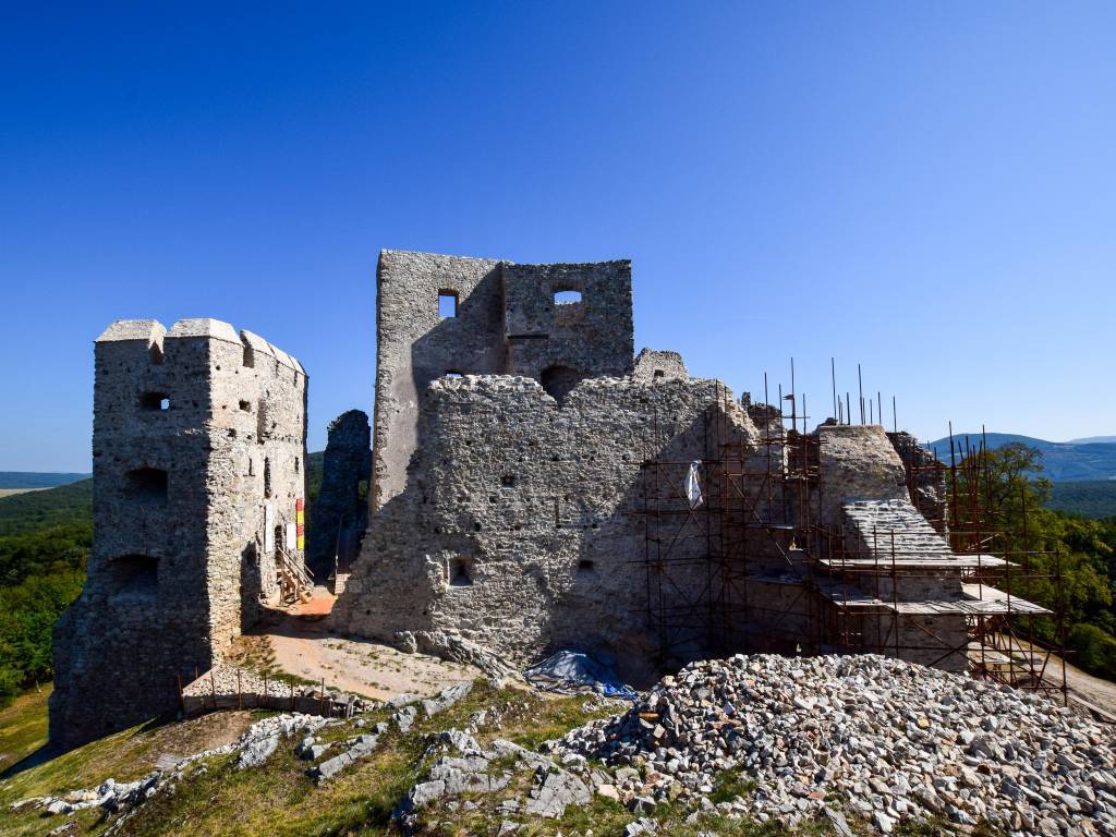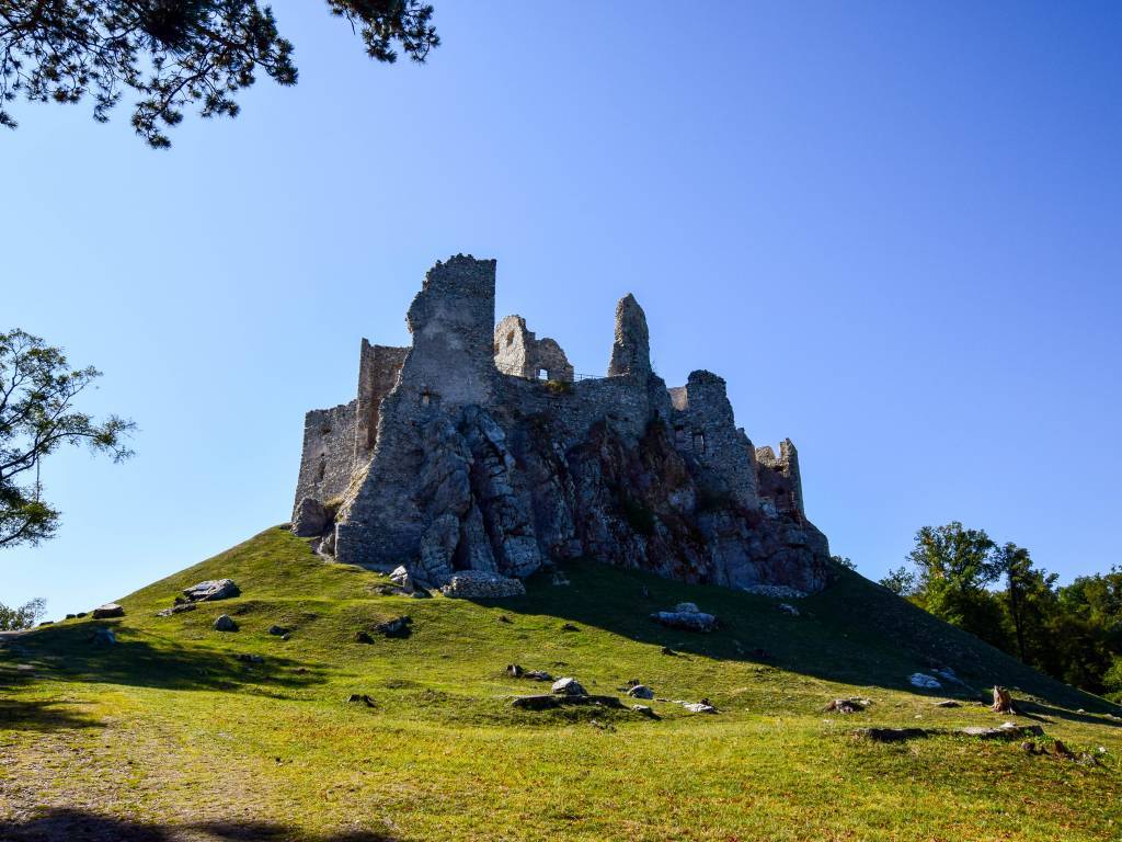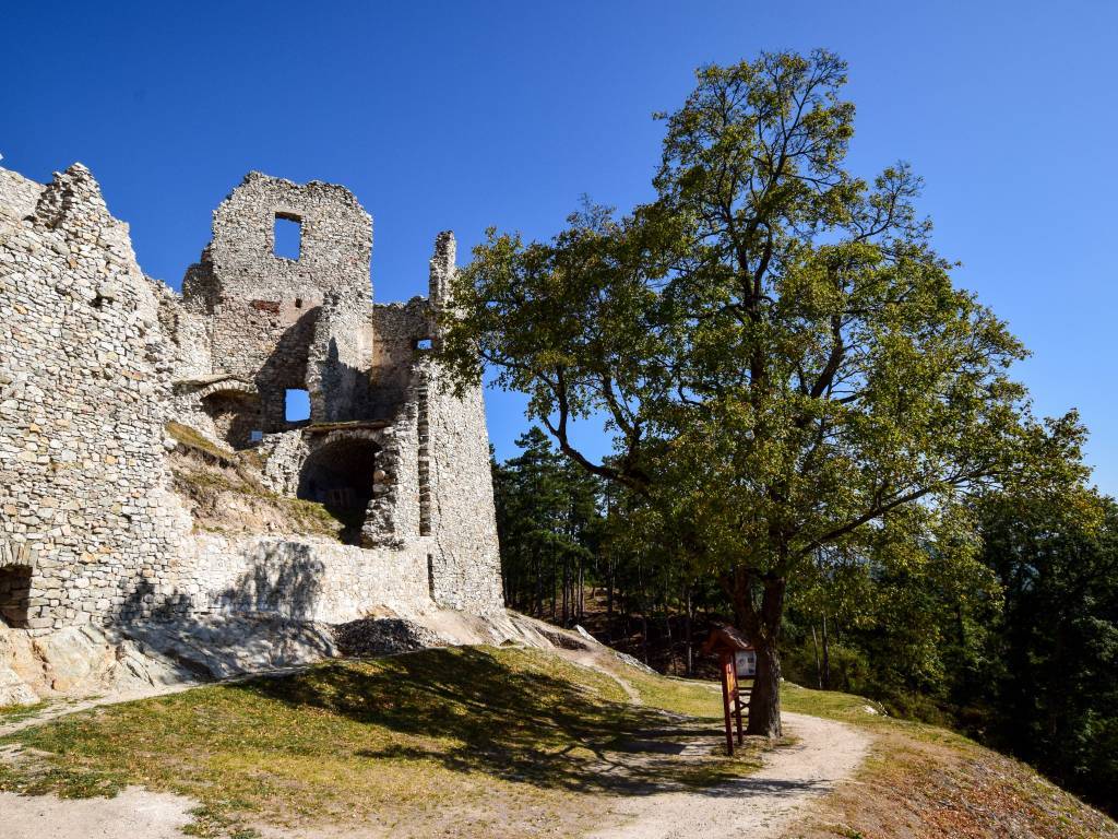 Wycieczka piesza do zamku Hrusov. Trasa prowadzi pod górę, na której zbudowano zamek. Ruina zamku jest bardzo malownicza i pięknie prezentuje się w słońcu. Z murów zamku można podziwiać panoramę okolicy.