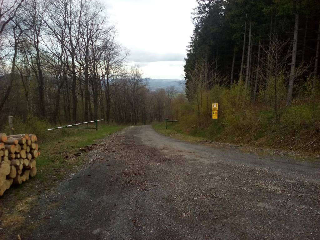 Start: Ski Arena Łysa Góra. Następnie udajemy się w kierunku dwóch wież, schodzimy w dół, w lesie skręcamy w lewo za bramką. Dochodzimy do polany pod górą Leśnica, skręcamy w lewo i schodzimy w kierunku Góry Szybowcowej - do nowo wybudowanej drogi, którą dochodzimy do niebieskiego szlaku.