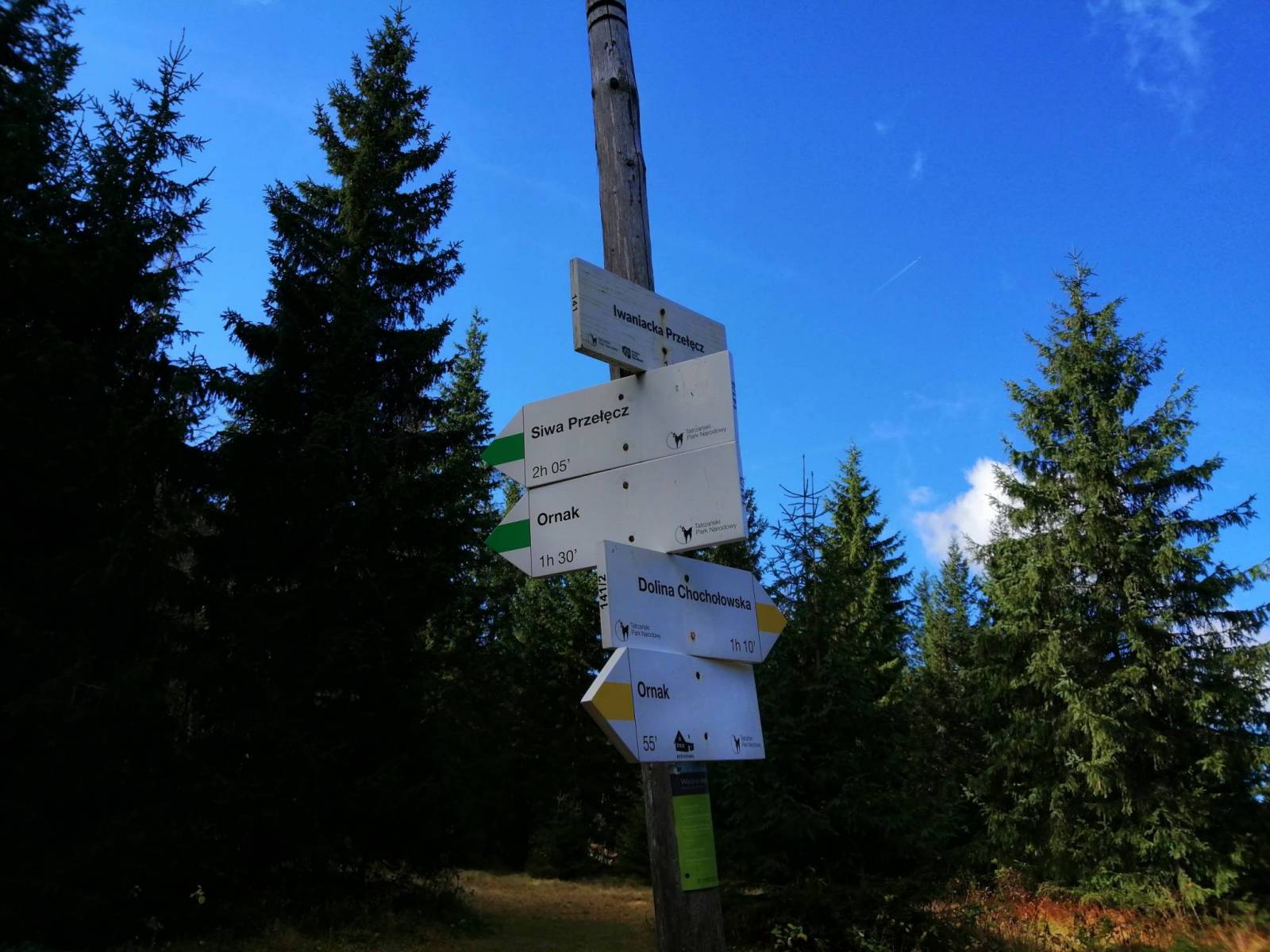 Kiry - Wyżnia Kira Miętusia - zielony szlak - Polana Pisana - Dolina Kościeliska - Schronisko Ornak - żółty szlak - Iwaniacka Przełęcz 1459m - Dolina Chochołowska - zielony szlak - Siwa Polana