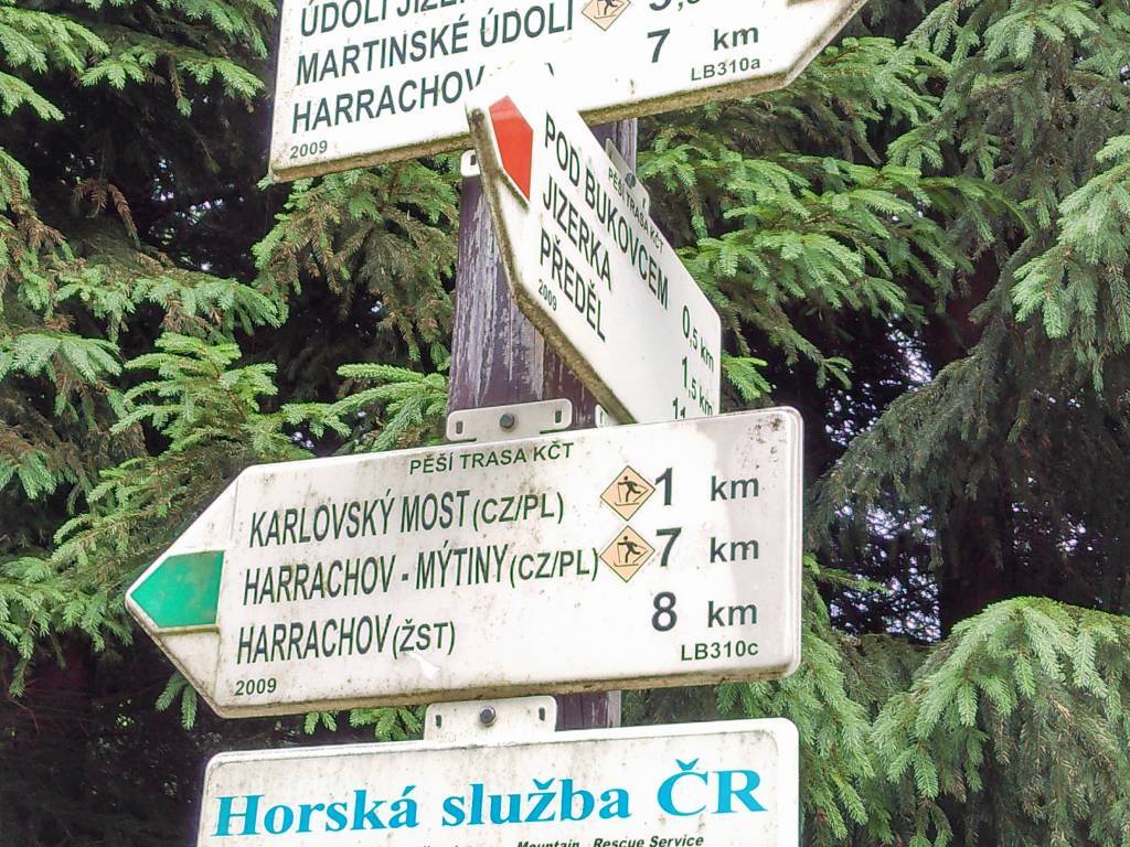 Czerwonym szlakiem ze stacji kolejowej Szklarska Poręba Jakuszyce do schroniska Orle. Dalej szlakiem zielonym na szczyt Bukovec i zejście do urokliwej miejscowości Jizerka, powrót do Kořenova szlakiem czerwonym i żółtym.