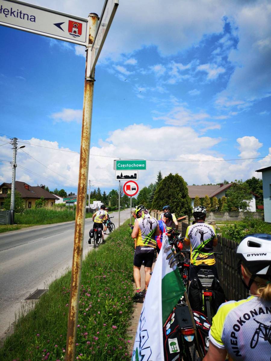 Mapa Jury Krakowsko-Częstochowskiej, fragmentu położonego bliżej Częstochowy. Zasięg mapy wyznaczają miejscowości: Częstochowa, Blachownia, Pajęczno, Radomsko. Zaznaczono tu szlaki piesze, rowerowe i konne wraz z zaznaczonymi odległościami.