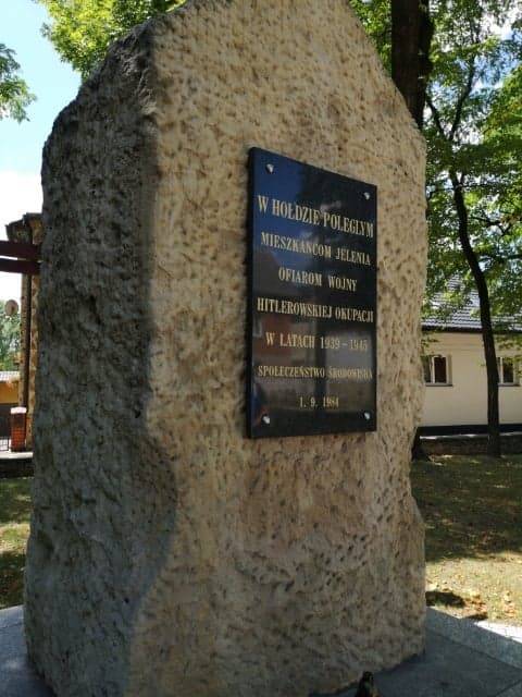 W centrum Jelenia usytuowano pomnik poświęcony bohaterom tej dzielnicy, ofiarom wojny oraz hitlerowskiej okupacji. Jeleń już 4 września 1939 roku dostał się pod okupację niemiecką. Podobnie jak to miało miejsce w innych miejscowościach ludność byłą uciskana z błahych powodów. Były nimi między innymi brak wiedzy na temat prawa niemieckiego bądź z brak znajomości języka.