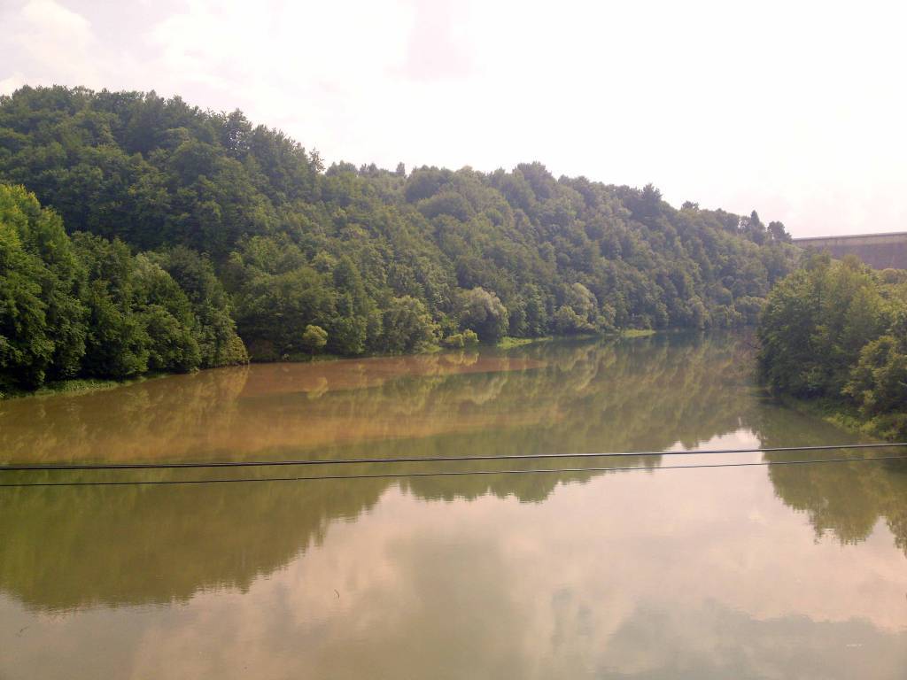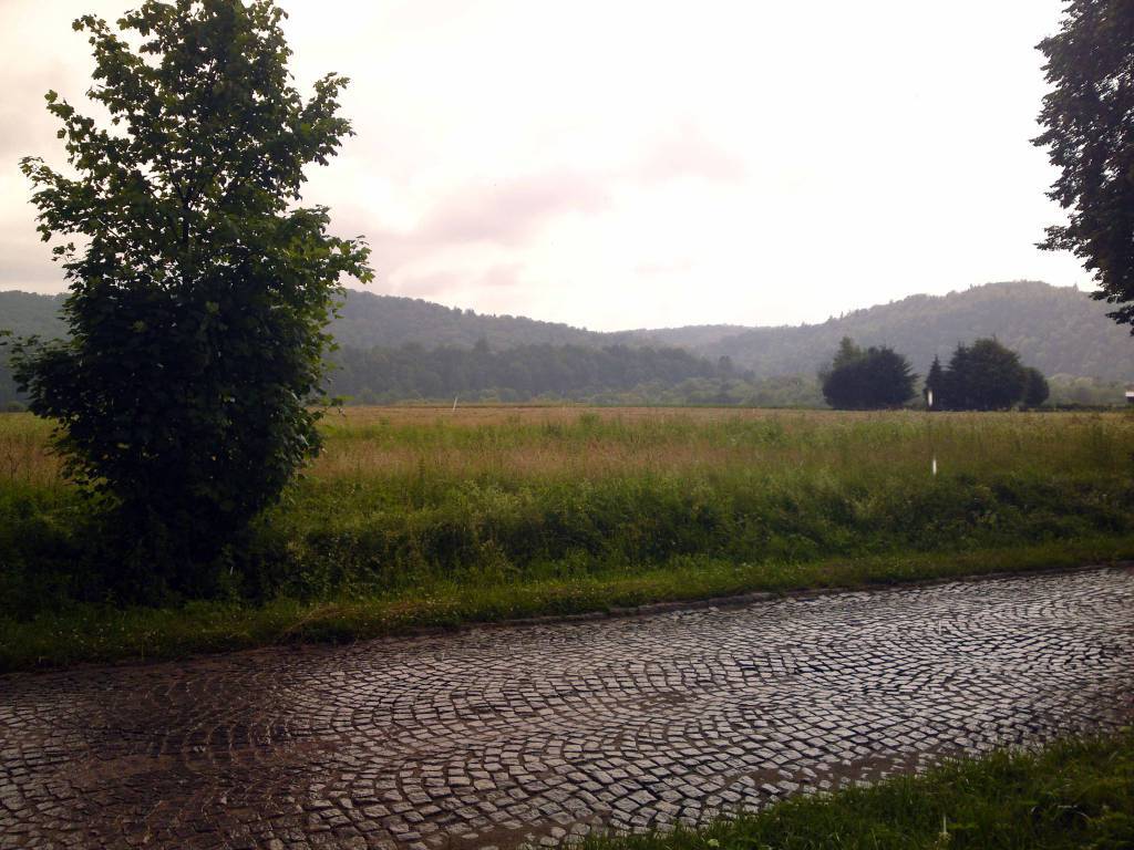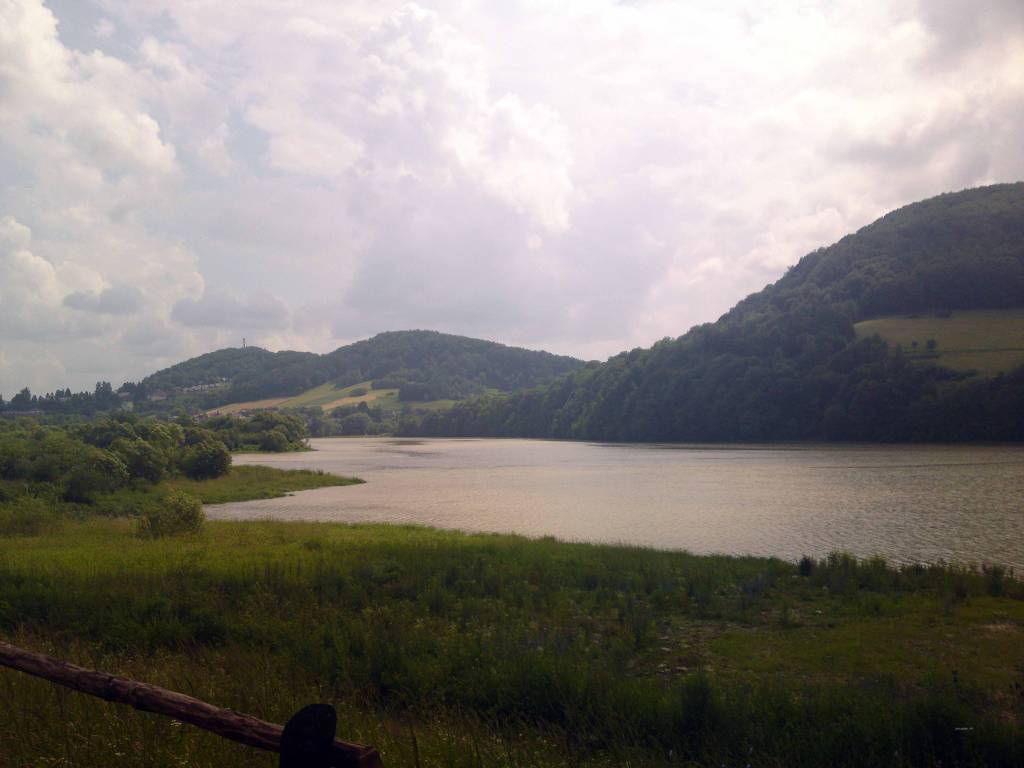 Około 14 zdejmuję rower z auta. Jest duszno i nie wykluczone ,że będzie padac deszcz. Mimo to ruszam na trasę . Dziś w stronę Soliny . Jadę wyznaczonym wcześniej śladem. Już wczoraj miałem okazje odczuć ,że Bieszczady to nie jakieś górki , ale góry dla wymagających. Okolice Soliny to tereny chyba bardzo często uczęszczane . Mimo ,że dziś poniedziałek na płatnych parkingach wiele osób . Ja jadę dalej w stronę Jeziora Myczkowskiego. W okolicach Myczkowce odnajduje punkt widokowy z przepięknym widokiem na przełom Sanu . Po drodze mijam także Centrum Kultury Ekumenicznej .Jadę jeszcze kilka kilometrów do cudownego źródełka . Tutaj zgodnie z wyznaczona trasą miałem wjechać na szutrową ścieżkę rowerową . Droga jest jednak tak błotnista ,że dość szybko wycofuję się z tego pomysłu. Widok burzowych chmur też przekonuje mnie do szybszego powrotu. Kilka kilometrów dalej dopada mnie rzęsisty deszcz . Zatrzymuje się chwile na przystanku autobusowym . Na tym przystanku zatrzymuję się tez jakaś młoda turystka . Chwilę rozmawiamy . Mimo nie ustającego deszczu zakładam kurtkę i ruszam dalej…….mokry docieram do celu…chrzest w Bieszczadach zaliczony.