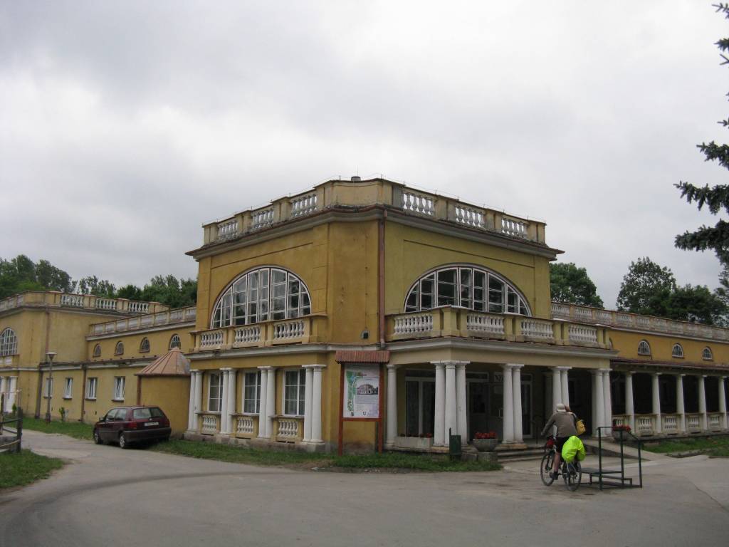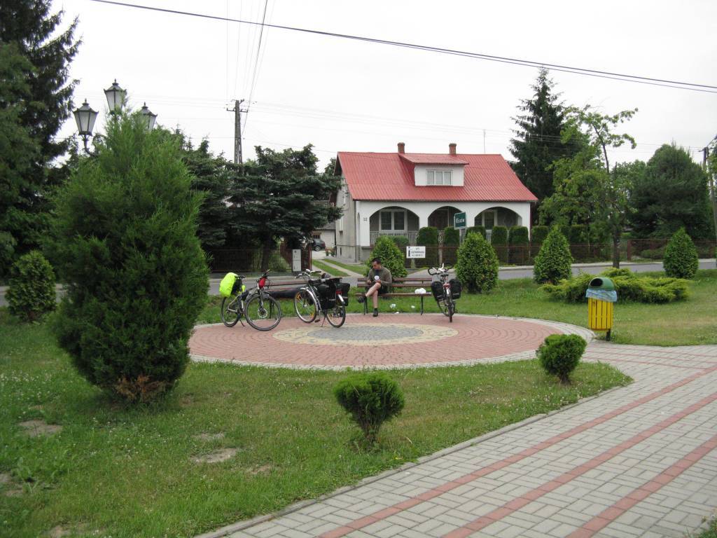 Skoro ostatni etap, czyli tzw.dojazdówka to i pogoda byle jaka. O ile na początku było jedynie pochmurnie, to po przekroczeniu Wisły rozpadało się na dobre i z krotka przerwą siąpiło aż po sam Tarnobrzeg. Na dodatek jeszcze trzeba było uważać na ciężarówki pomiędzy Szczucinem, a Sadkową Górą w związku z wytyczonym objazdem. Trasa wybitnie płaska i w całości po asfalcie. Rozpoczęliśmy od zwiedzenia parku zdrojowego w Solcu z budynkiem sanatoryjnym, potem było charakterystyczne dla małych miasteczek, zabudowane na planie kwadratu centrum Szczucina ( z przerwą na gorące napoje). Następne atrakcje to doskaonale nam znany (wszak do Tarnobrzega coraz bliżej) drewniany kościół św. Wojciecha w Gawłuszowicach, zrewitalizowane centrum Baranowa Sandomierskiego ("Małego Wawelu" bardzo z drogi nie widać wię o nim nie wspominam) i nasze Jezioro Tarnobrzeskie. No może jeszcze wymienię przejazd po szerokim torze w Zadusznikach towarowego kolosa złożonego z okolo 40 wagonów z nieśmiertelnymi Gagarami na czele. Ot etap jak etap ale zawsze pozostaje satysfakcja z przejechanych kilometrów, nawet pomimo paskudnej aury