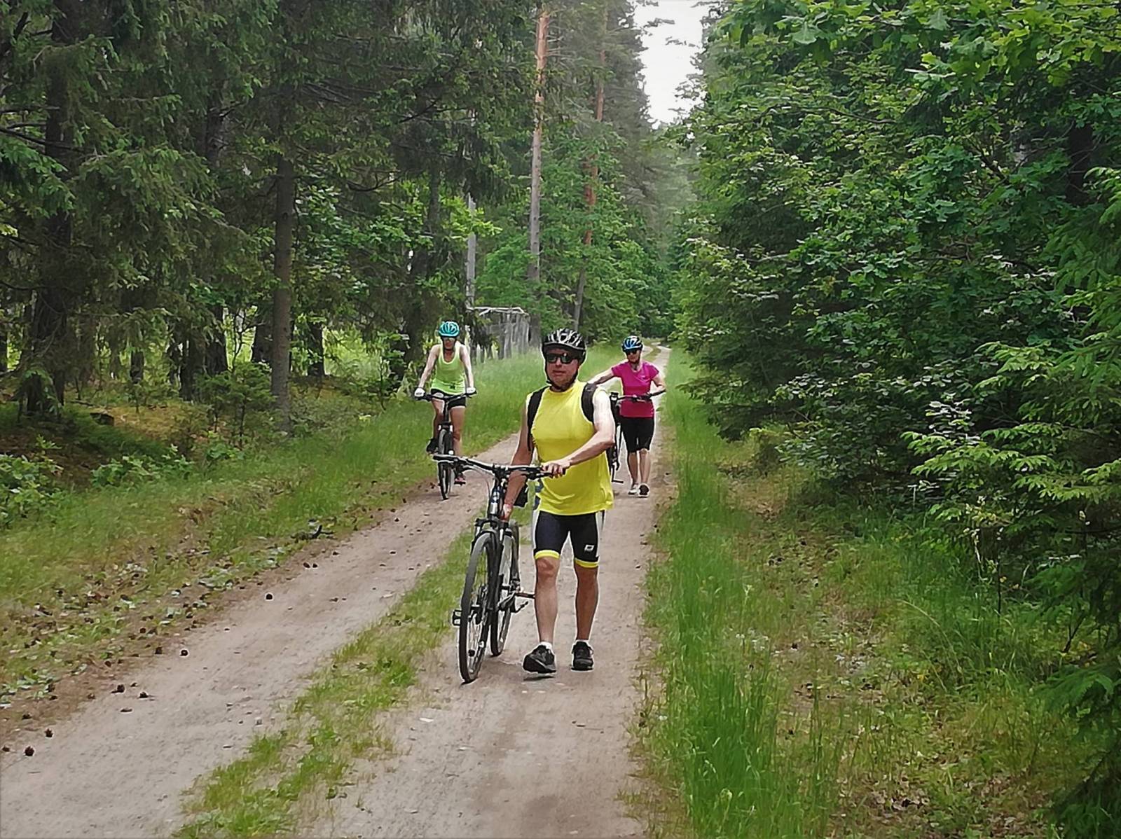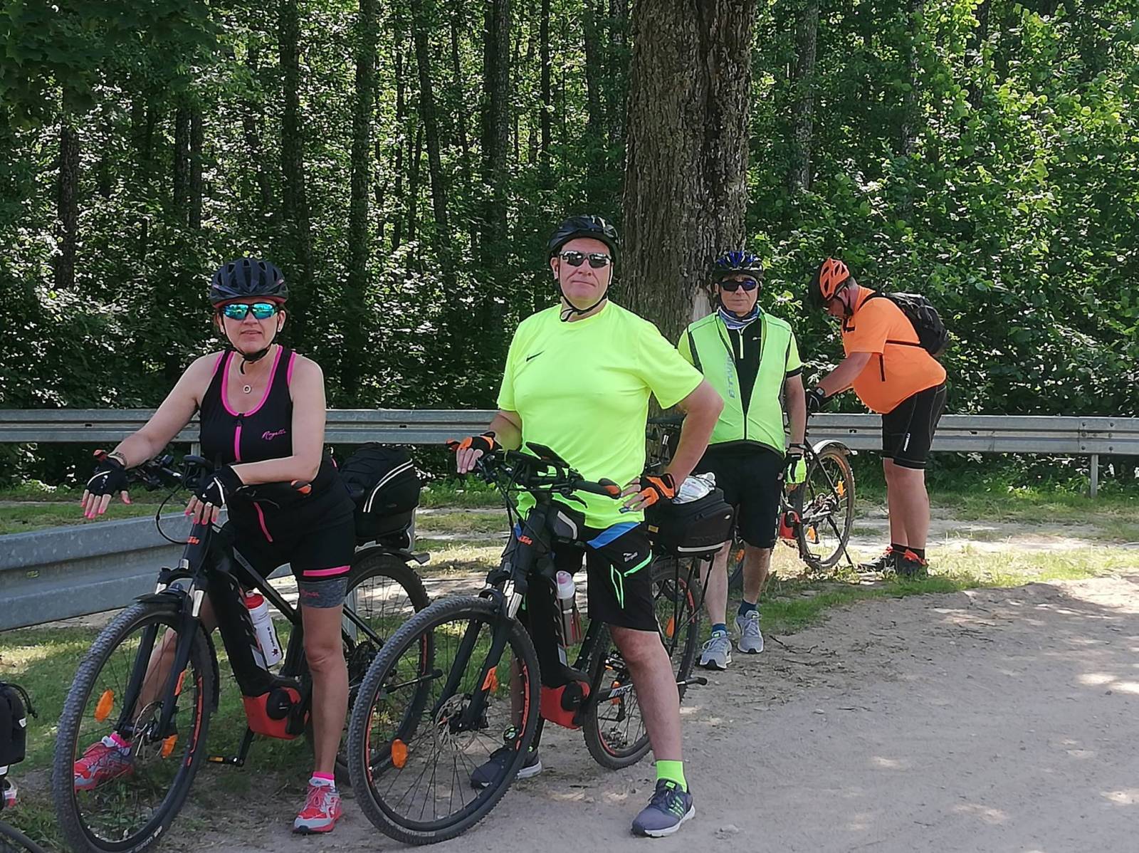Trasa szlakiem Kanału Augustowskiego tzw trasa śluz. Wielce przyjemna wycieczka na odcinku do ostatniej śluzy Kudrynki potem zaczyna się przejazd po drodze leśnej z kopnym piachem - dramat rowery grzęzną często w piachu i trzeba mieć niezłą kondycję i technikę jazdy aby sie nie zawiesić. Dopiero w Szczelcowiźnie zaczyna się asfalt i można odpocząć. Trasa w 80 % przebiega przez las. UWAGA ANI JEDNEGO SKLEPU NA TRASIE. Myślę, że następnym razem poprowadziłbym trasę na Rygol bo droga przez Muły adekwatna do nazwy.