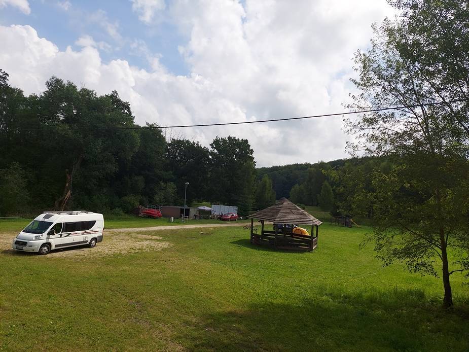 Kończymy spływ po pochylni Całuny Nowe, na której jest wybetonowany parking.