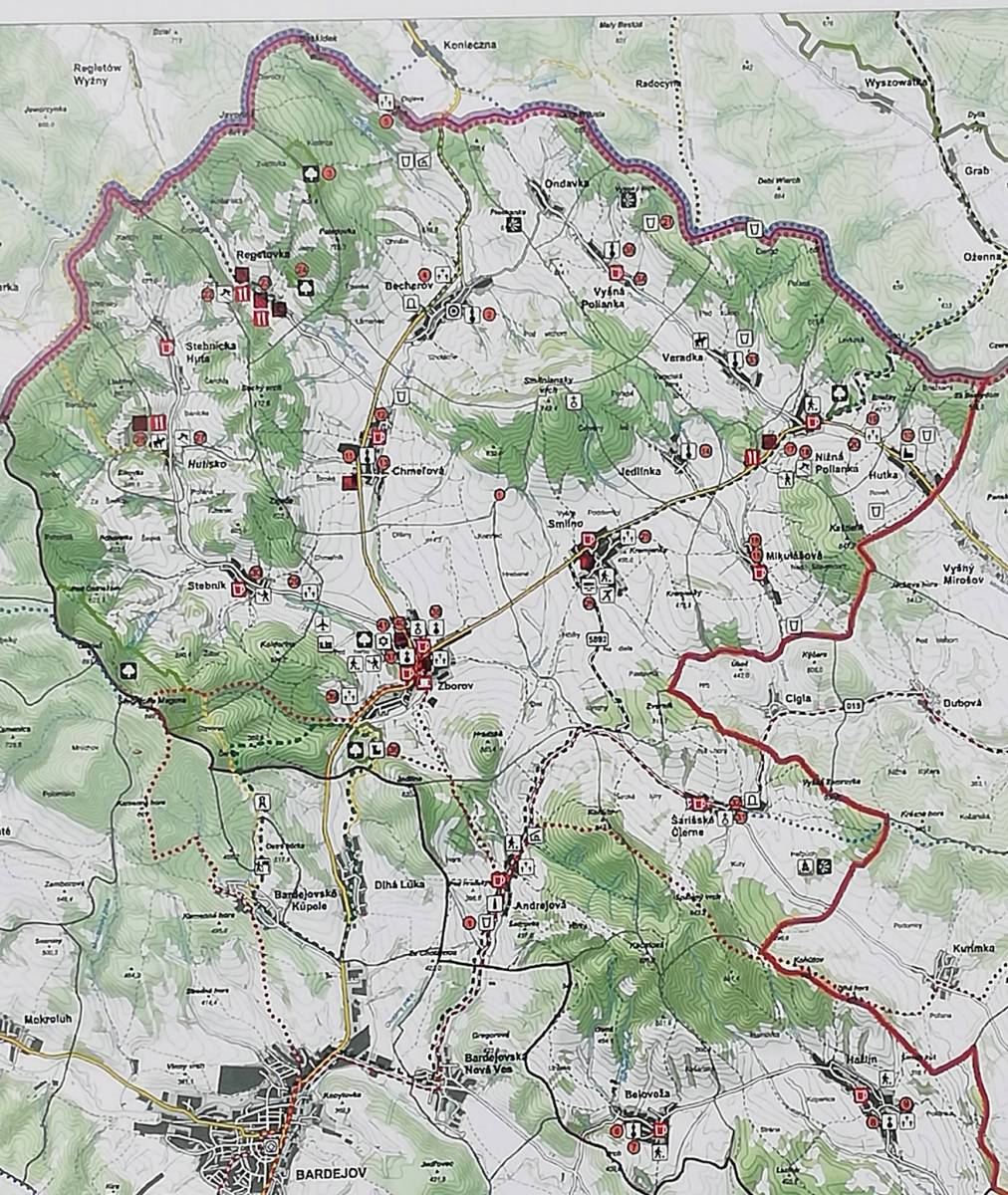 Mapa obejmuje część słowackiego Beskidu Niskiego oraz Góry Czerchowskie. Jest to część historycznego regionu Szarysz. W jego sercu położone jest urokliwe, wpisane na listę UNESCO miasteczko Bardejów.