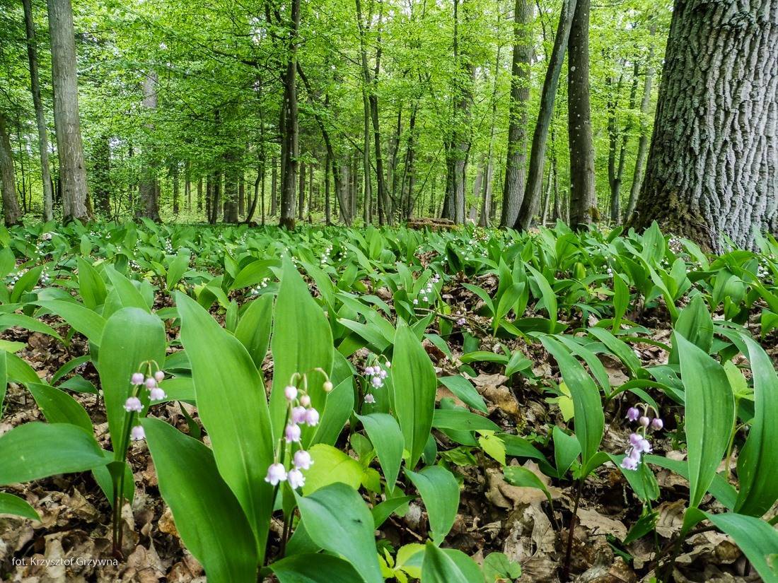 Konwalia majowa w okolicach Kreżelina, ciekawostką jest kolor kwiatostanu o zabarwieniu lekko fioletowym.