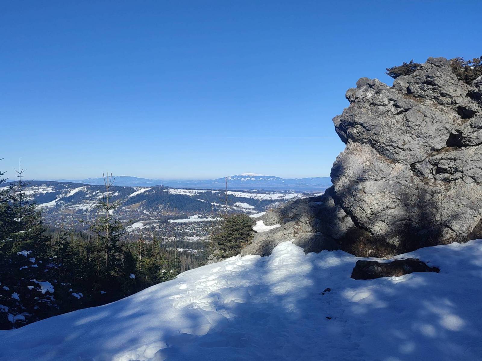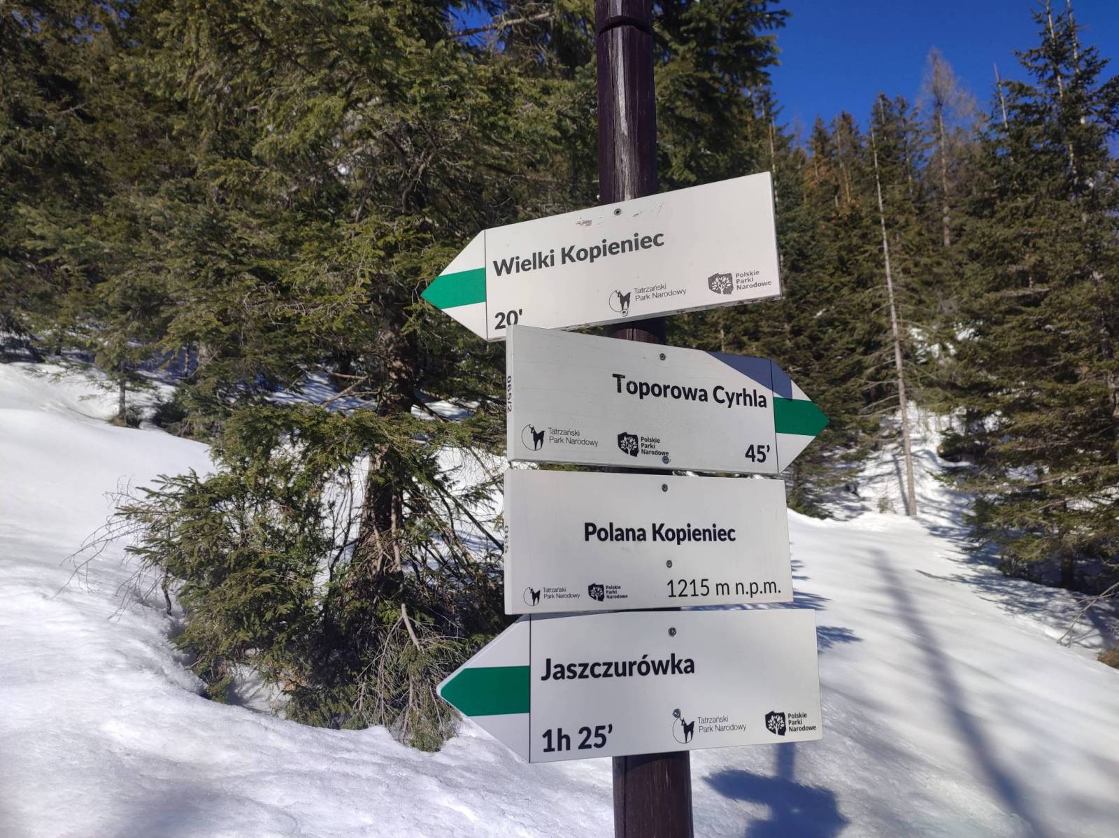 Trasę zaczynam na prywatnym parkingu w Cyhrli. Na Kopieniec Wielki idę szlakiem zielonym. Wejście jest łatwe. Ze szczytu schodzi się dość stromo i tutaj przydają się już raczki. Z Kopieńca idę w kierunku Polany Olczyskiej, skąd szlakiem żółtym idę w kierunku Przełęczy Nosalowej. Dalej zielonym wchodzę na Nosal. Zejście z Nosala północną stroną jest oblodzone, toteż tutaj co najmniej raczki są obowiązkowe. Do parkingu wracam wzdłuż asfaltowej ulicy, z której w pewnym momencie schodzę do kaplicy w Jaszczurówce. Trasa jest dość łatwa z ładnymi widokami. Można ją przejść bez przygotowania a nawet z dzieckiem.