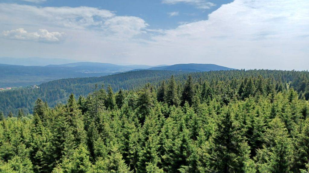 The Orlické Mountains are a mountain range located mainly in northeastern Bohemia in the Czech Republic, forming a subgroup of the Central Sudetes. They follow the border with Klodzko Land in Poland for 25 miles (40 km). The highest point in the range is Velká Deštná, at 1,115 m. The entire region has maintained its original natural character over the centuries, which is why you will find beech primeval forests, protected landscape areas or nature parks and reserves, interwoven with trails, right next to chateaux and town parks and groomed rural gardens. Stołowe Mountains are a 42-kilometre-long mountain range in Poland and the Czech Republic, part of the Sudetes. The Polish part of the range is protected as the Stołowe Mountains National Park. The highest peak of the range is Szczeliniec Wielki at 919 m. The range is formed of sandstone and, as the only one in Poland, presents plated structure with sheer mountain ledges. Among the tourist attractions there are two massifs: Szczeliniec Wielki on which the labyrinth, and Skalniak on which the labyrinth Błędne Skały (Errant Rocks). There are several notable rock formations, among them Kwoka ("Hen"), Wielbłąd ("Camel"), Małpa ("Monkey"), Głowa Konia ("Horse Head"), Fotel Pradziada ("Great Grandfather's Armchair").