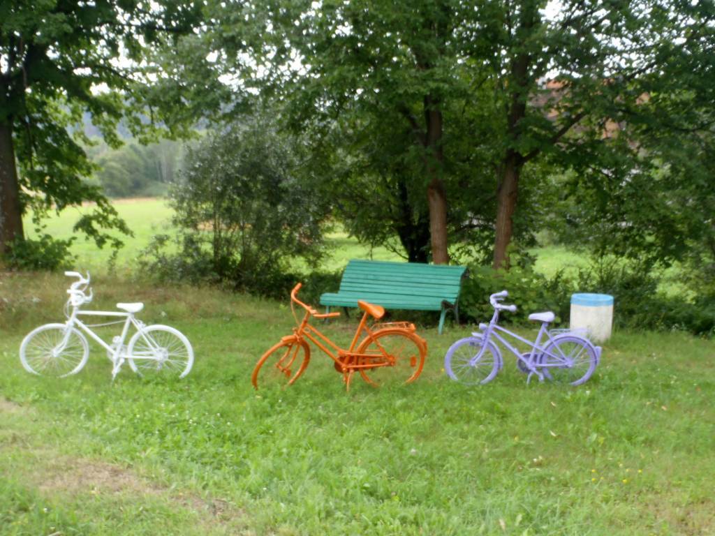 Z Kowadła trzeba było zjechać z powrotem do Bielic, na ich drugim koncu i zacząć pokonywać scieżkę w kierunku granicy. Typowo piesza scieżka, rower nie pomagał. Dopiero graniczna część szlaku pozwalała płynnie jechać. Niewątpliwie ciekawostką jest szlak hydraulików wytyczony rurkami PCV przyczepionymi do granicznych słupków. Można i tak..