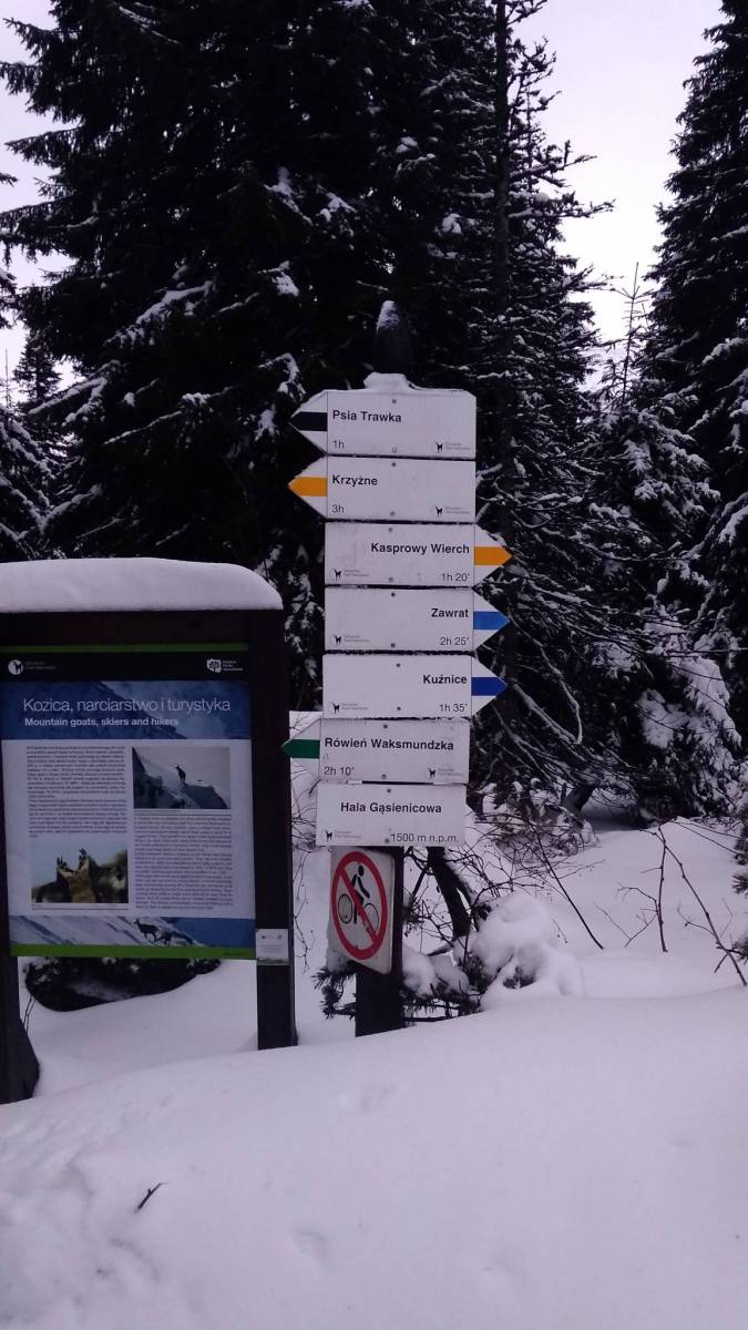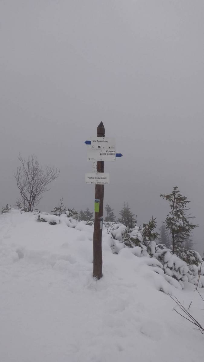 Ostatni wypad w Tatry w 2018 roku. Warunki w górach średnie, a pogoda nie rozpieszczała. Zatem stwierdziliśmy, że idziemy do Murowańca a potem Kościelec lub Świnica. Z racji tego, że niedawno byłem na Świnicy padło na ten drugi. Do Karbu bez problemów, jedynie w kilku miejscach mimo przetartego szlaku zapadało się powyżej kolana. Na Karbie posiłek przed atakiem, założenie sprzętu (raki, czekan, kask) i dodatkowo gogle ze względu na wzmagający się wiatr, który sypał śniegiem po oczach. Na górę warunki ciężki. Ścieżka wydepatana, ale zawiewana, zatem bardzo czujnie szukając śladów. Pierwszy komin ominięty. W paru miejscach użycie drugiej ręki. Tuz przed szczytem bula, za którą spokojnie można wbić czekan i się na nim podciągnąć. A na szczycie nic nie widać. Odgrzebuję ze śniegu znak szlaku, jako jedyny dowód na szczycie (no dobra jeszcze GPS). Kilka chwil na Kościelcu i czas iść w dół.Wspomnianą bulę w miarę łatwo po niej zeszło, dalej ścieżka zawiana i czasami jedynie dziura po czekanie wskazuje drogę. Zmysł orientacyjny daje radę i w końcu ukazuje się Karb. Dalej już bezpiecznie w dół i przejście Doliny Gąsienicowej. Powrót do Kuźnic Doliną Jaworzynki, gdzie górnej części szlaku można przyspieszyć robiąc dupozjazdy.