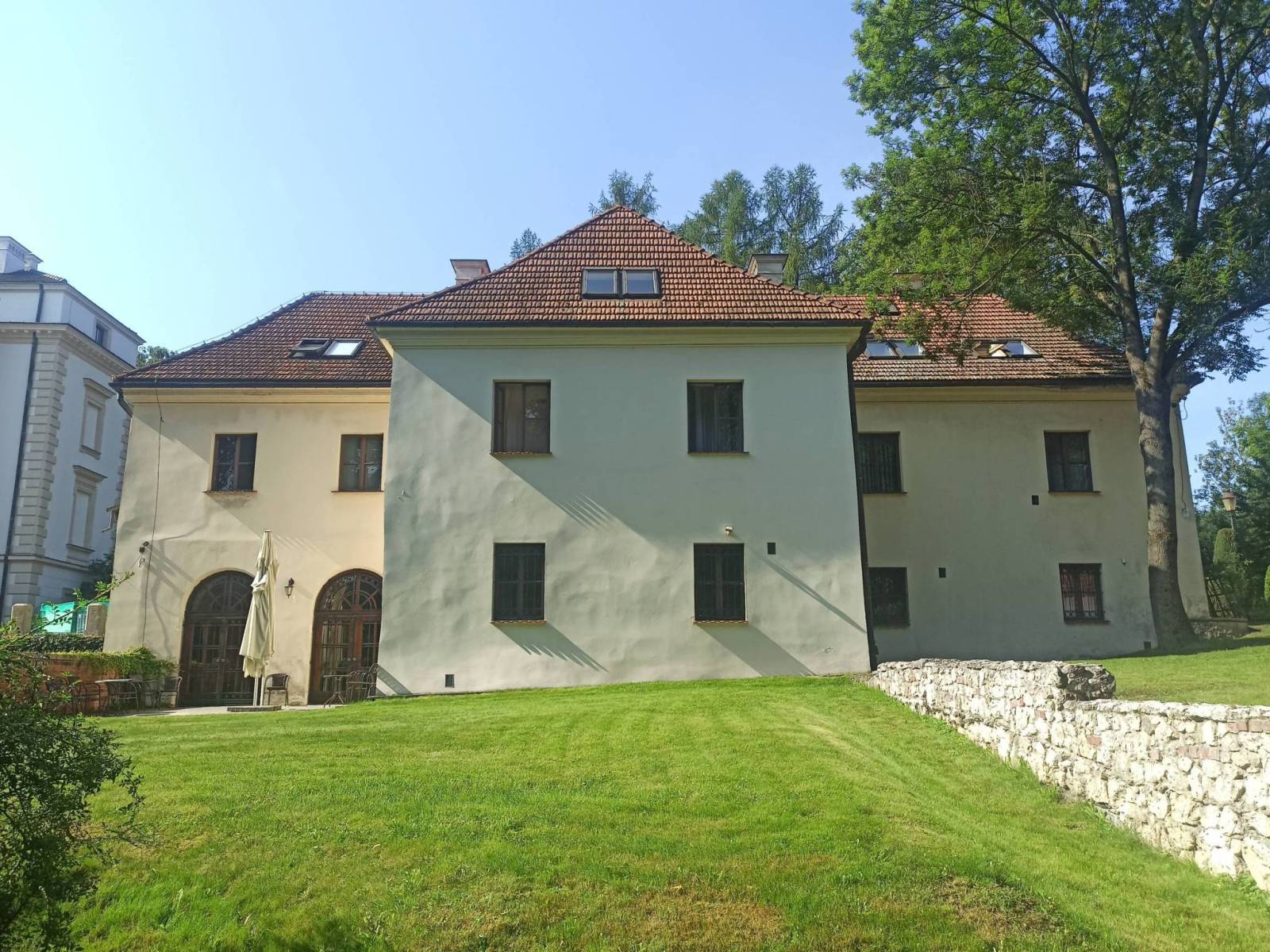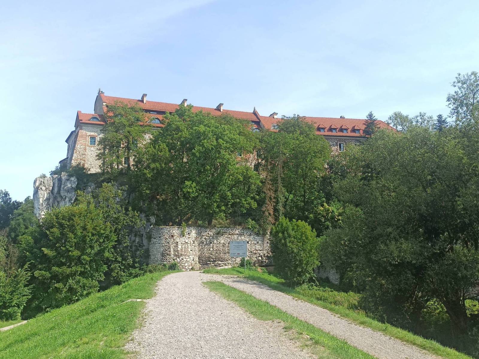 Przez wiele lat unikałem jazdy z Krakowa do Kalwarii Zebrzydowskiej bo wydawała mi się bardzo odległa jednak pogląd ten zmienił się w ubiegłym roku, kiedy to bez większego problemu dojechałem tam i nawet udało mi się wrócić. W tym roku postanowiłem znowu wybrać się do kalwarii jednakże w trochę zmodyfikowanej trasie i przy zdecydowanie ładniejszej pogodnie niż w ubiegłym toku. Trasę zaplanowałem tak żeby uwzględnić na niej interesujące mnie miejsca. Miejsc tych trochę się uzbierało by wymienić tylko oprócz sanktuarium w Kalwarii opactwo w Tyńcu, pałac Wężyków w Paszkówce, drewniany kościół w Woli Radziszowskiej czy zamek w Zebrzydowicach zamieniony z upływem czasu w klasztor, szpital i dom opieki. To tylko kilka przykładów bo takich ciekawych miejsc było znacznie więcej, przynajmniej dla mnie. Jednym z takich miejsc był także dwór Brandysów, który po wieloletnim porzuceniu i popadaniu w ruinę zaczyna nabierać wyglądu z czasów świetności. Planując trasę starałem się unikać ruchliwych dróg i wybierałem albo ścieżki rowerowe albo drogi lokalne o możliwie jak najmniejszym ruchu co generalnie mi się udało. W zdecydowanej większości drogi, którymi się poruszałem miały nawierzchnię asfaltową, jedynym dłuższym odcinkiem z nawierzchnią gruntową był ten od sanktuarium w Kalwarii do Mostu Anielskiego w Brodach ale wiódł on z góry i nie sprawiał problemów. Trasa wycieczki wiodła w dużej części terenami płaskimi a jeśli się pojawiały podjazdy to w większości niezbyt wymagającymi. Bardziej wymagające podjazdy znajdowały się między Paszkówką a Przytkowicami i w samej Kalwarii w drodze do sanktuarium. W trakcie wycieczki modyfikacji uległ jej końcowy etap, już w Krakowie. Pierwotnie zamierzałem jechać przez Rynek Główny jednakże, gdy pomyślałem sobie, że będę musiał przeciskać się pomiędzy tłumami turystów wybrałem drogę wzdłuż bulwarów Wisły, gdzie ludzi też jest wprawdzie sporo ale przynajmniej jest ścieżka rowerowa, po której można się poruszać zdecydowanie bardziej komfortowo.