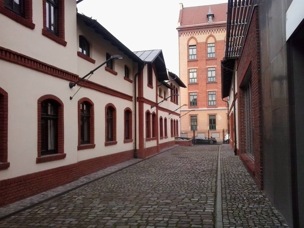 Trasa prowadzi wśród stosunkowo wysokich budynków starej kazimierskiej zabudowy.