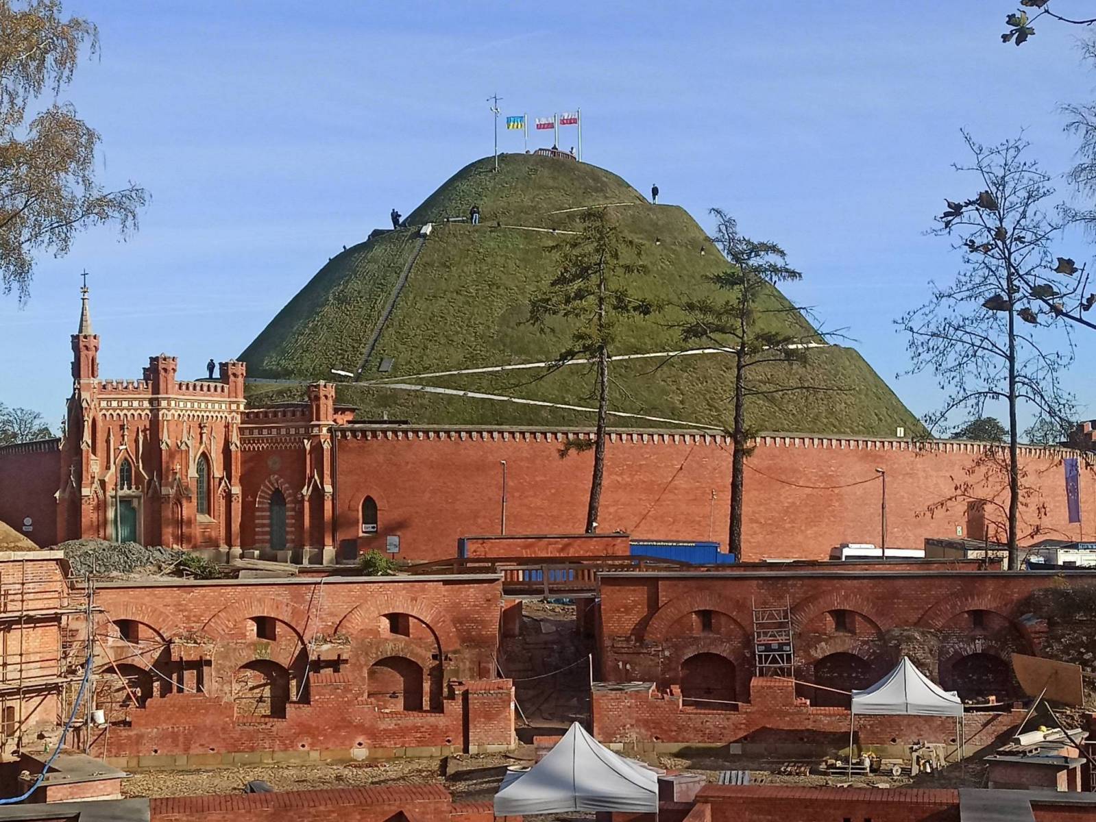 Kraków pod względem ilości kopców jest rekordzistą w Polsce. Ponoć jest ich w Krakowie 13 przy czym najbardziej znanych jest 5 czyli Kopiec Piłsudskiego, Kościuszki, Wandy i najmłodszy z nich Kopiec Jana Pawła II. Kopce te są atrakcją dla krakowian i turystów i są chętnie odwiedzane, za wyjątkiem Kopca Jana Pawła II, który znajduje się na ogrodzonym terenie należącym do Zgromadzenia Księży Zmartwychwstańców. Kopce te wielokrotnie znajdowały się na trasach moich wycieczek rowerowych jednakże staram się aby choć raz w roku tych pięć najbardziej znanych kopców znajdowało się na trasie jednej wycieczki. Zazwyczaj ma to miejsce na początku roku lub pod koniec, kiedy dni są stosunkowo krótkie i nie chcę się za bardzo oddalać od Krakowa. W tym roku wycieczka ta wypadła pod koniec roku. Aby zaliczyć te kopce nie trzeba opuszczać Krakowa ja jednak podczas tegorocznej wycieczki zrobiłem jednak krótki wypad za Kraków do Zabierzowa, w którym w tym roku jeszcze nie byłem a poza tym chciałem dodać trochę kilometrów. Z racji tego, że wycieczka odbywała się głównie jednak w mieście, tempo wycieczki było dość rwane. Tam gdzie się dało korzystałem ze ścieżek rowerowych jednak niezależnie od tego jaką drogą się poruszałem, dość często musiałem się zatrzymywać z uwagi na na panujący ruch i skrzyżowania, które trzeba było pokonać. Za to trasa była stosunkowo płaska i nie wymagała zbyt dużo wysiłku. Wyjątkiem był podjazd na Kopiec Piłsudskiego od strony Zakamycza, gdzie było naprawdę stromo. Był to także jedyny dłuższy odcinek z nawierzchnią gruntową, na pozostałej części trasy nawierzchnia była głównie asfaltowa. Dotarcie i trafienie do w/w kopców nie stanowi większego problemu. Wyjątkiem jest jednak Kopiec Wandy. Jest on bardzo kiepsko oznaczony i w zasadzie najlepiej dostać się do niego tramwajem. Samochodem w jego pobliże mogą dotrzeć chyba jedynie wtajemniczeni a również dotarcie rowerem nie stanowi wielkiej przyjemności. Od strony Pleszowa i Mogiły trzeba pokonać bardzo dziurawą drogę z płyt betonowych między którymi są duże szczeliny, a od strony Al. Solidarności, gdzie trwa budowa obwodnicy Krakowa, trzeba poruszać się albo bardzo ruchliwą drogą albo bardzo dziurawym chodnikiem. Mam nadzieję, że po wybudowaniu obwodnicy sytuacja się poprawi.