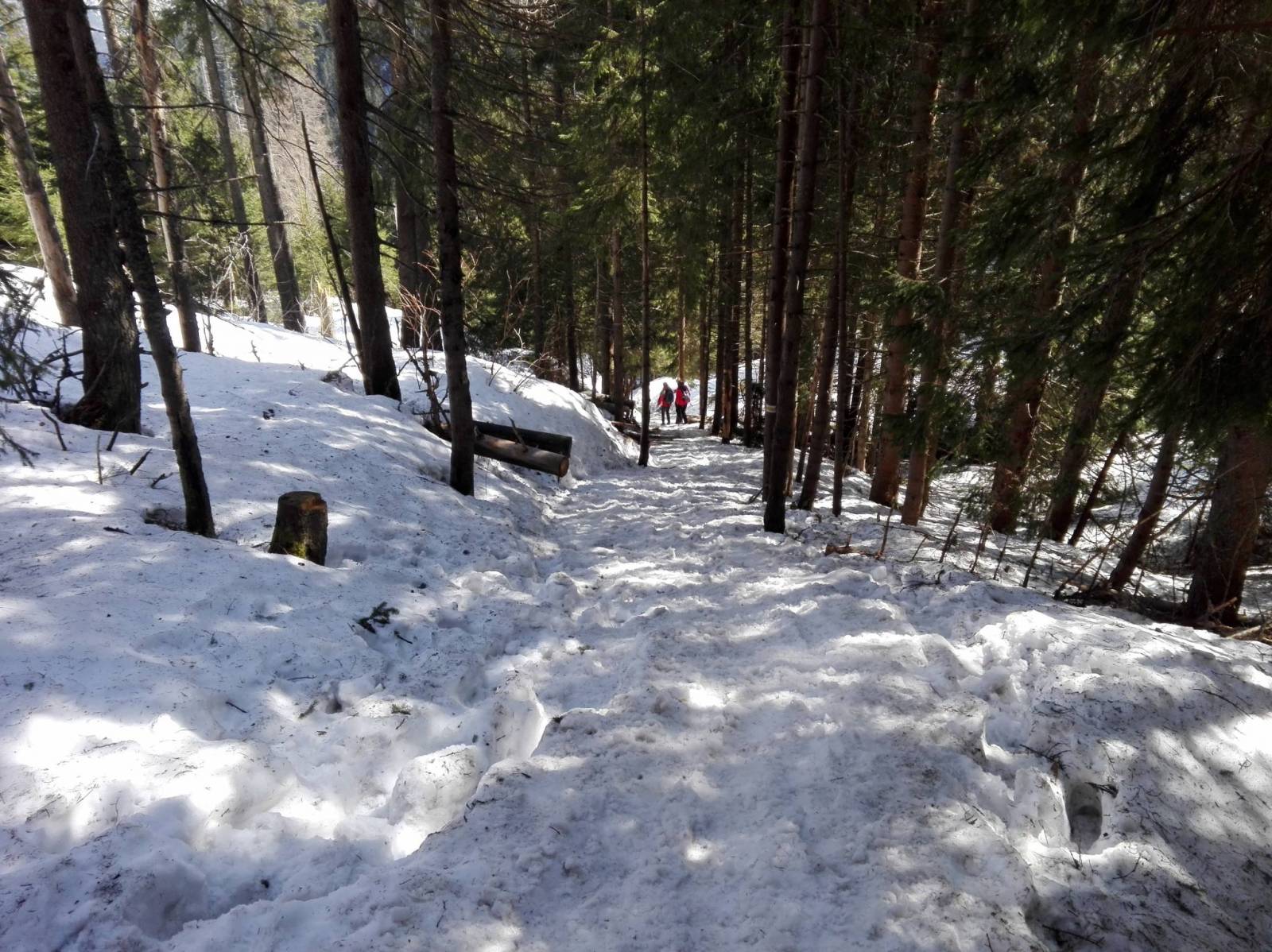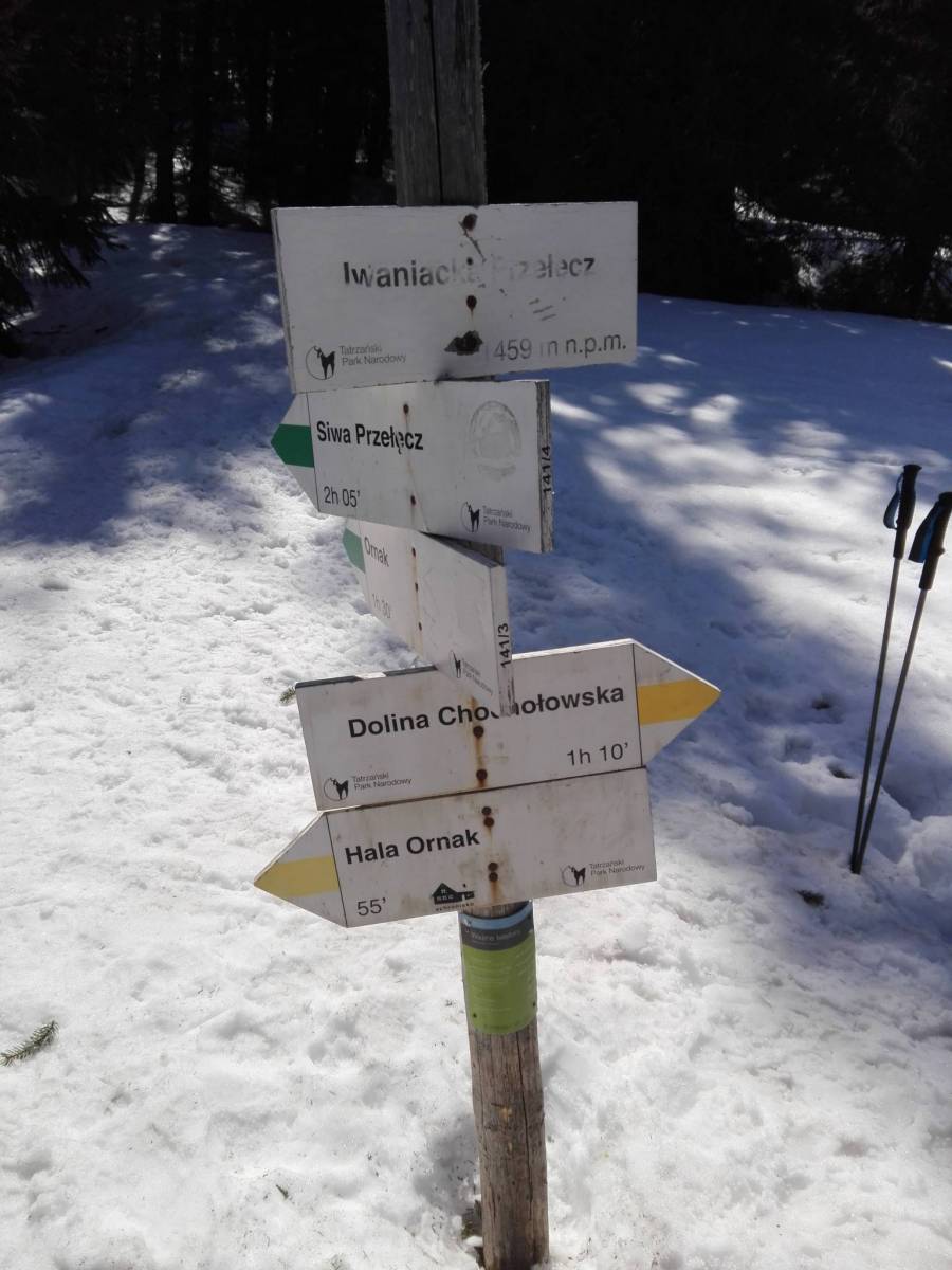 Wczesny wyjazd z Krakowa zaowocował w wolne miejsce na parkingu przed Siwą Polaną. Udaliśmy się w drogę przez Dolinę Chochołowską podziwiać wiosenny wysyp Krokusa a inaczej Szafranu Spiskiego na Polanie Chochołowskiej. Trasa bardzo popularna, jednak my urozmaiciliśmy trochę powrót przechodząc przez Iwaniacką Przełęcz do Schroniska na Hali Ornak i dalej do Doliny Kościeliskiej. Trasa przez Dolinę Chochołowską ze względu na poranną godzinę (przed 8) przebiegała nawet spokojnie i płynnie. Turyści dopiero zaczęli się zjeżdżać. Śnieg widoczny tylko w wyższych partiach ale w bardziej zacienionych odcinkach drogi znaczne oblodzenie utrudnia przejście nieprzygotowanym turystom w adidasach itp.:-) Po około 1godz i 40min oraz przebytych prawie 8km dotarliśmy na Polanę Chochołowską. Widok tak ogromnej ilości rozkwitających Krokusów w porannym słońcu zapiera dech w piersi. Masa zrobionych zdjęć i kawa z szarlotką w Schronisku wzmocniła nas przed dalszą wędrówką. Z parkingu szliśmy tutaj zielonym szlakiem. Powrót tym samym,przez odcinek około 3km. W pobliżu Leśniczówki Chochołowskiej odbijają w prawo dwa szlaki, czarny i żółty. Udaliśmy się żółtym przez Iwaniacką Dolinę idąc ścieżką pomiędzy powalonymi drzewami. Ścieżka wspinała się w górę dość stromo. Podejście ciągnie się na odcinku ok. 3km. Czym wyżej tym grubsza warstwa oblodzonego śniegu utrudniała nam wyjście. Dotarliśmy do Przełęczy Iwaniackiej skąd biegnie również zielony szlak na Ornak. Ale na Ornak innym razem. Schodzimy z przełęczy dalej żółtym szlakiem. Tym razem strome i oblodzone zejście pokonaliśmy dość szybko bo w godzinkę byliśmy już przed Schroniskiem na Hali Ornak. Chwila odpoczynku, pyszny obiadek i powrót wszystkim chyba znaną Doliną Kościeliską. Niestety po przejściu Doliny musieliśmy się dostać na parking na Siwej Polanie korzystając nie z busa lecz z zielonego szlaku przez wlot do Doliny Lejowej. Przypadkiem trafiliśmy na łąki krokusów nieopodal zabudowań. Trasa nie jest bardzo wymagająca. Moim zdaniem nawet trochę monotonna ale obydwie dolinki zwiedzałem już nie raz. Dystans prawie 25km wraz z wszystkimi przystankami przebyliśmy tempem bardzo spokojnym w 10,5 godziny. Sam wysyp krokusów polecam wszystkim bo widok naprawdę bezcenny. Jednak trzeba się liczyć z masą turystów co bardzo utrudnia wędrówkę.