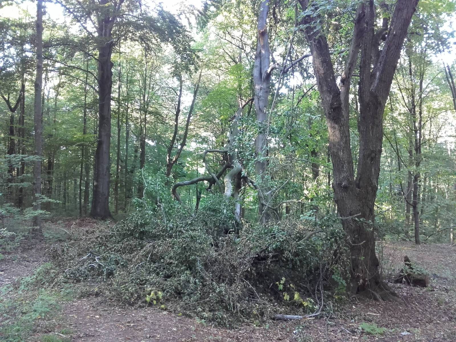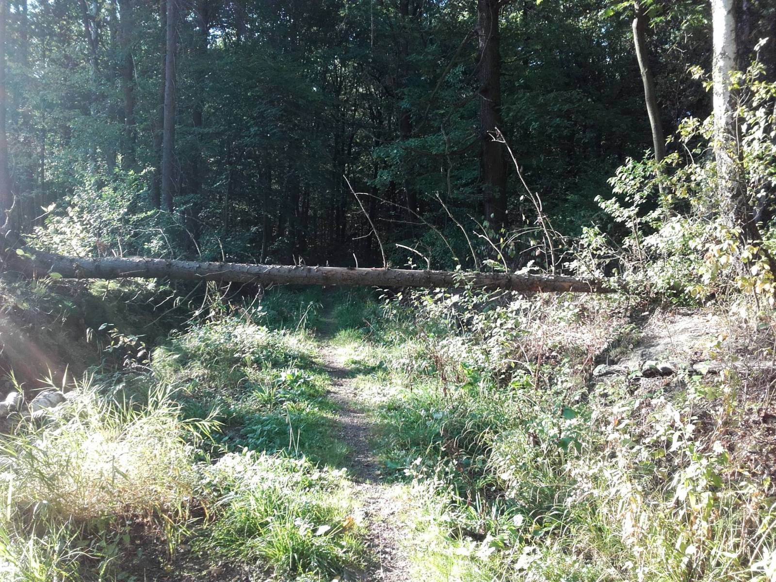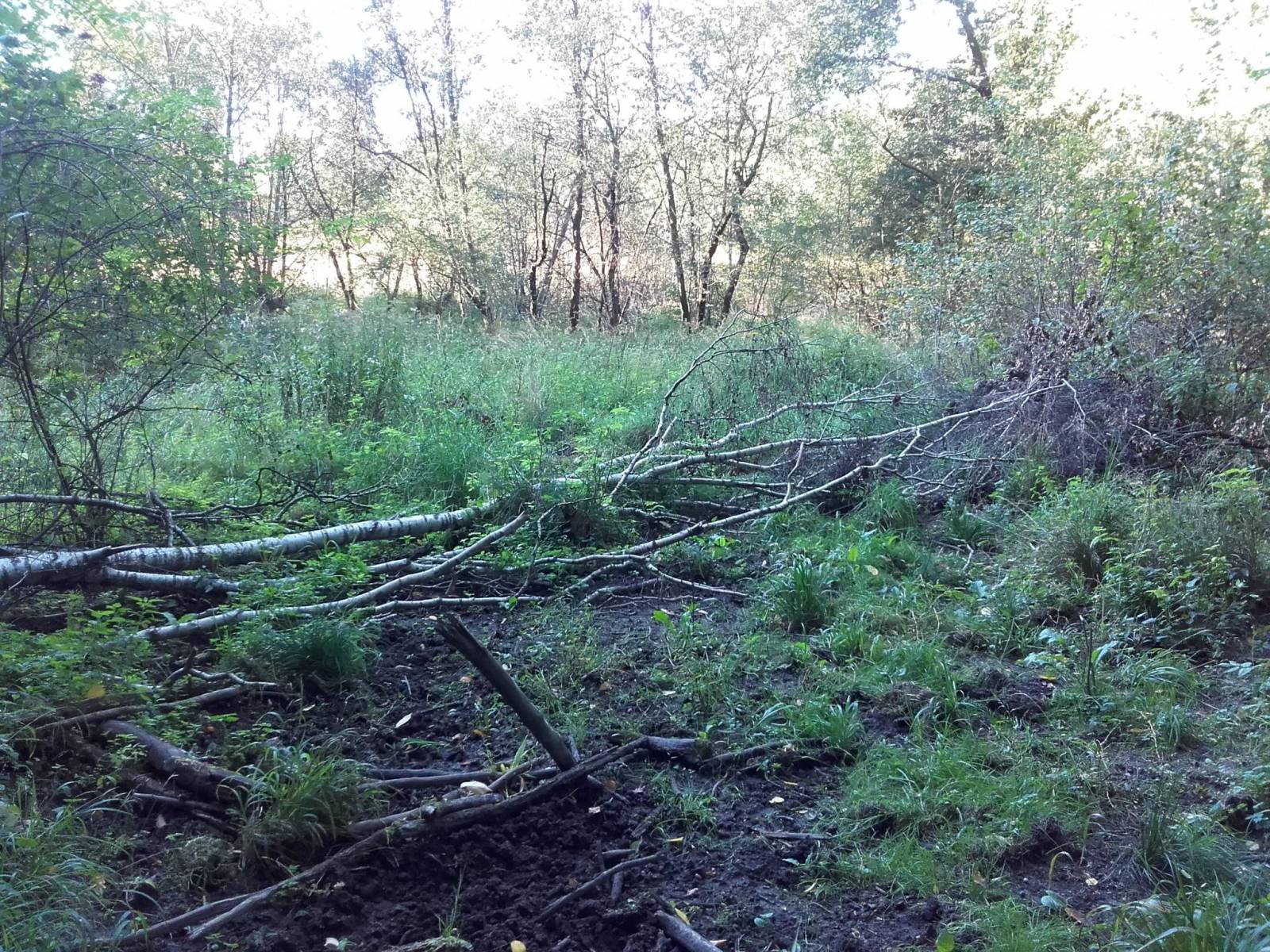 Krótka trasa rowerowa po lesie Miechowickim. W dwóch miejscach natknąłem się na powalone drzewa, natomiast jedna ze ścieżek to ślepy zaułek (totalne bagna na zdjęciu).