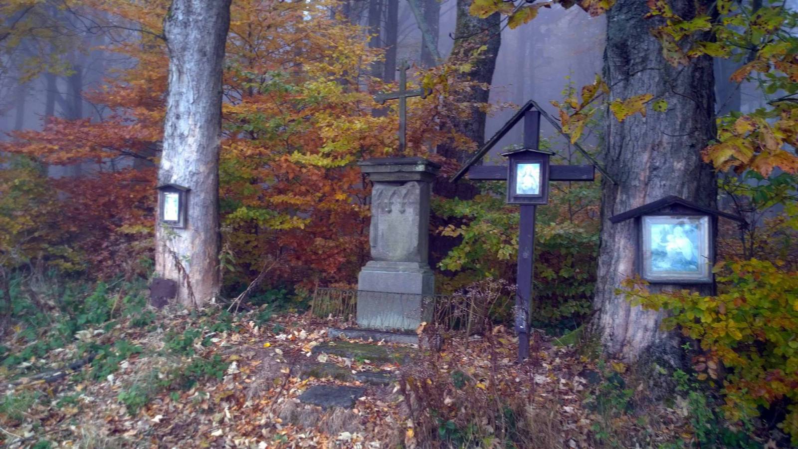 Dziś kolejna wyprawa w poszukiwaniu krzyży pokutnych na terenie Czech . Auto pozostawiam na parkingu koło restauracji . Początkowo usiłowałem znaleźć jakieś miejsce w Pekov , ale okazało się to niemożliwe . W tej miejscowości stoją dwa krzyże pokutne , oba przy drodze głównej . Dalej moja trasa prowadzi w okolice Adrspach , Skalnych Miast ,Ostasz . Miejsca te już odwiedzałem , liczyłem w zasadzie na widoki , ale mgła zmieniła wszystko . Taka jazda ma swoje zalety , ale o tej porze roku na rowerze było dość chłodno . Ostatni krzyż odnajduje w Ceskiej Metuje , ten stoi także przy drodze . Jest to jeden z ładniejszych krzyży , które do tej pory widziałem .