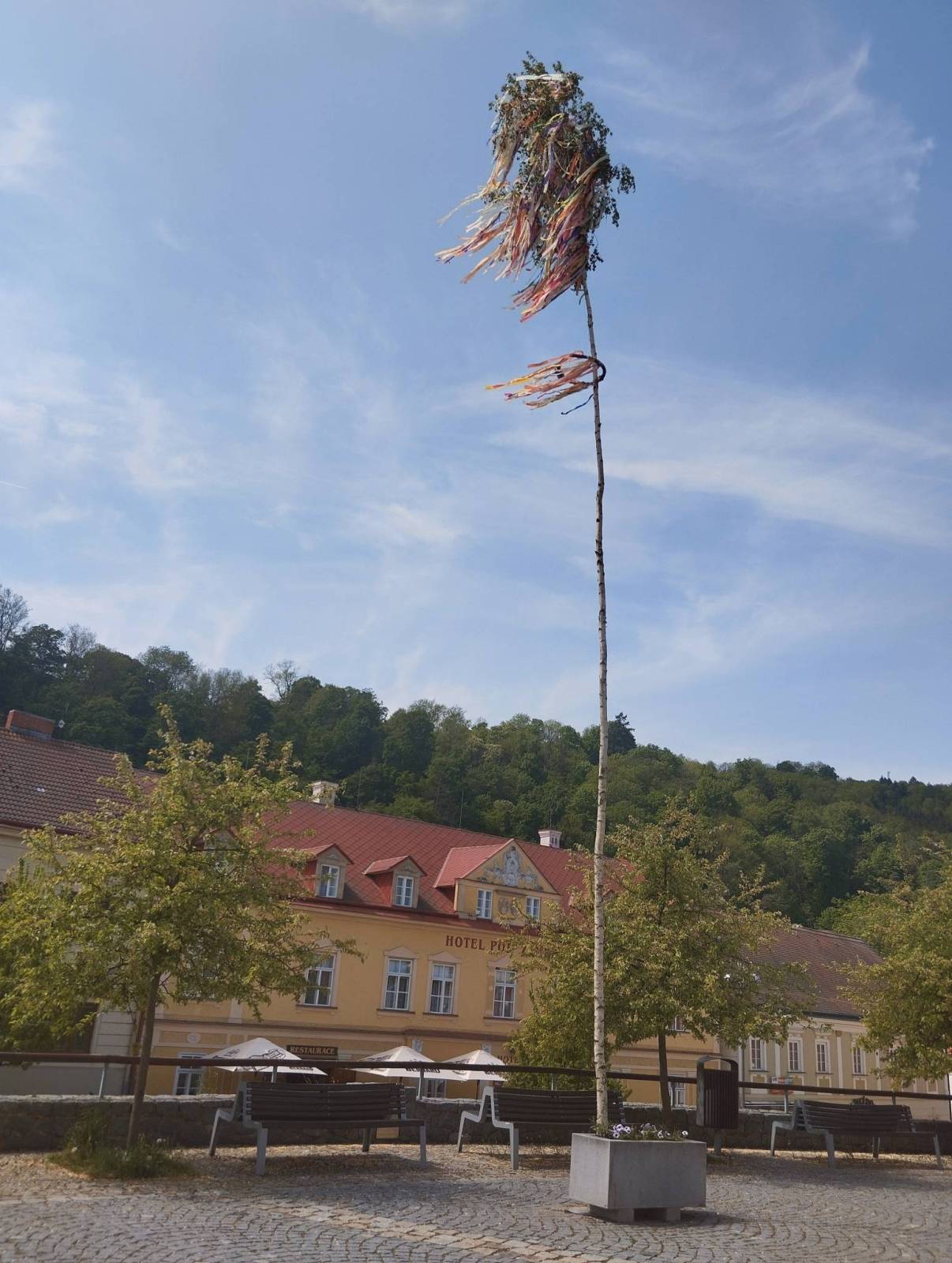 The map presents part od south-eastern Moravia in Czech Republic, with famous town of Telč. Besides the monumental 17th-century Renaissance château with an English-style park (a rebuilding of original Gothic castle), the most significant sight in Telč is the town square, a unique complex of long urban plaza with well-conserved Renaissance and Baroque houses with high gables and arcades; since 1992 all of this has been a UNESCO World Heritage Site.