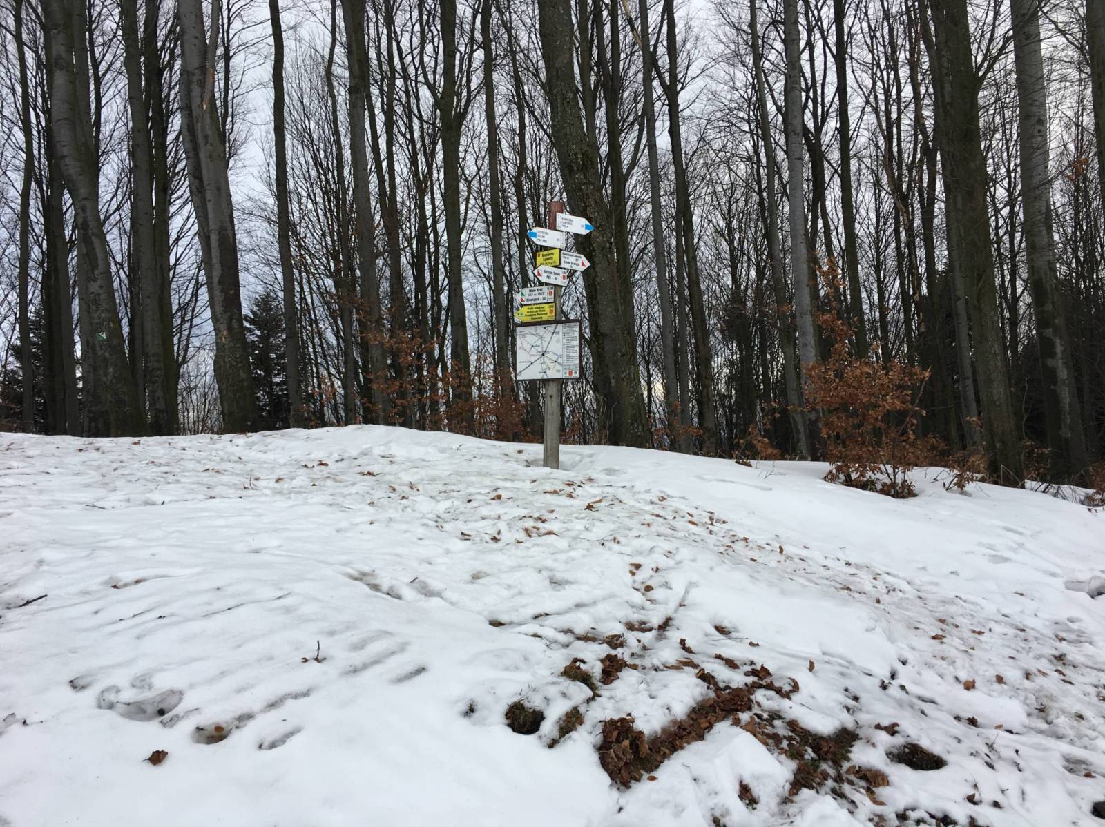 The map depicts the Polish Bieszczady mountains, which are part of the Eastern Carpathians, spreading over the Slovak, Polish and Ukrainian borders. Map range: Lesko and Ustrzyki Dolne to the north, Komańcza to the west, the Ukrainian border to the east. The map also presents part of Národný park Poloniny (Poloniny National Park) in Slovakia.
