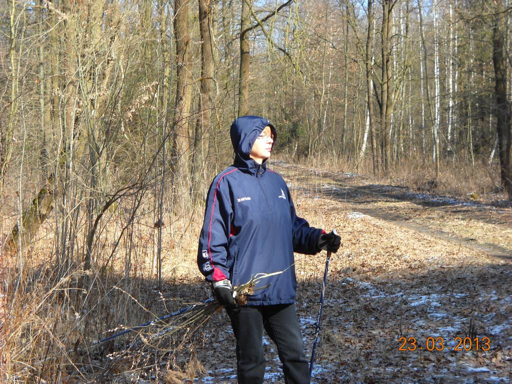 Wchodzimy do lasu przy słupku drogowym 102/9 przy szlabanie.