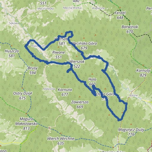 Mapa szlaku rowerowego uruchomionego w roku 2004 przez Grupą Partnerską „Zielone Bieszczady” - nieformalne trójsektorowe partnerstwo (organizacje pozarządowe, instytucje publiczne, partnerzy biznesowi), powstałe w celu zrównoważonego rozwoju przygranicznych polsko-słowacko-ukraińskich.