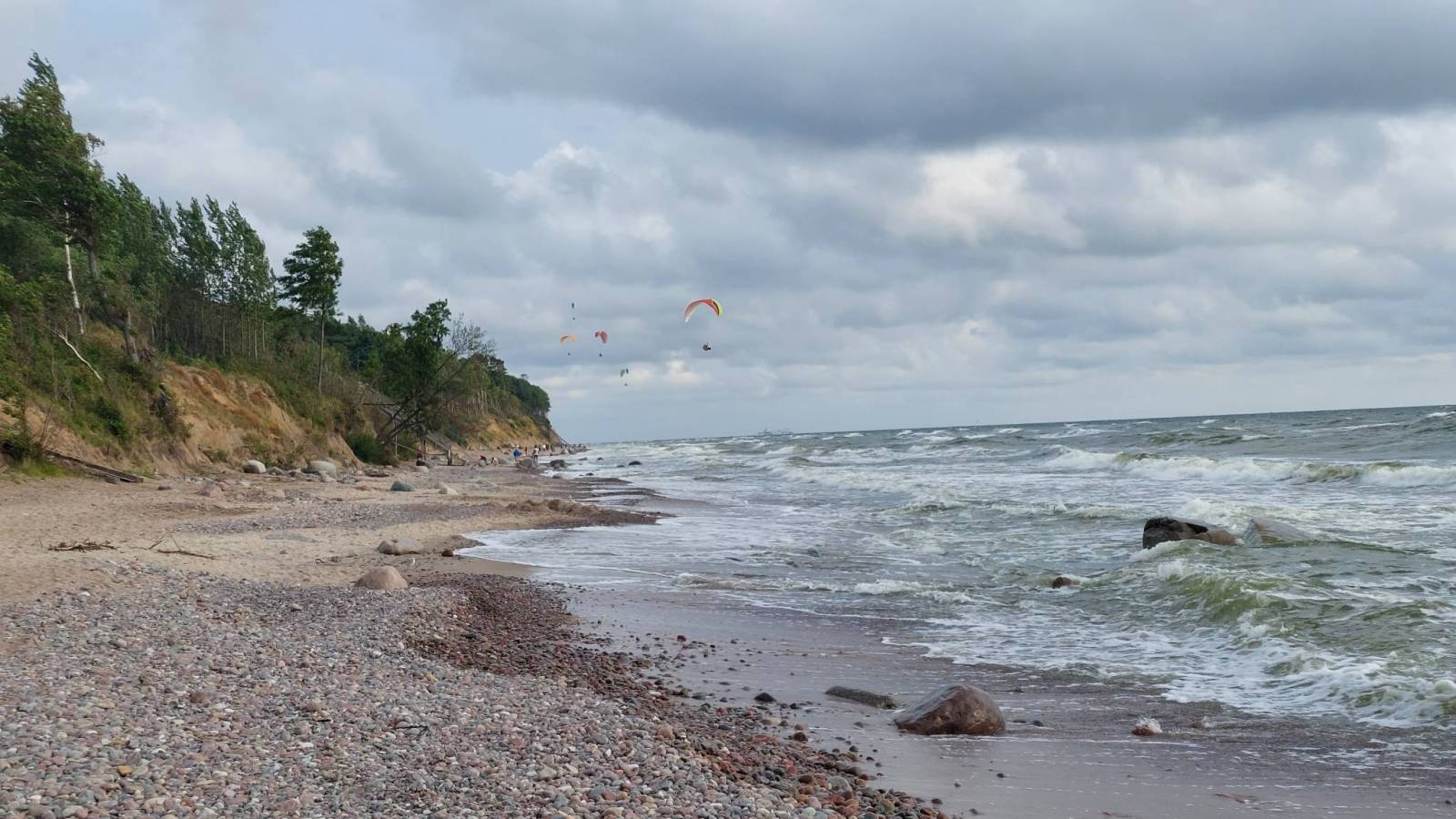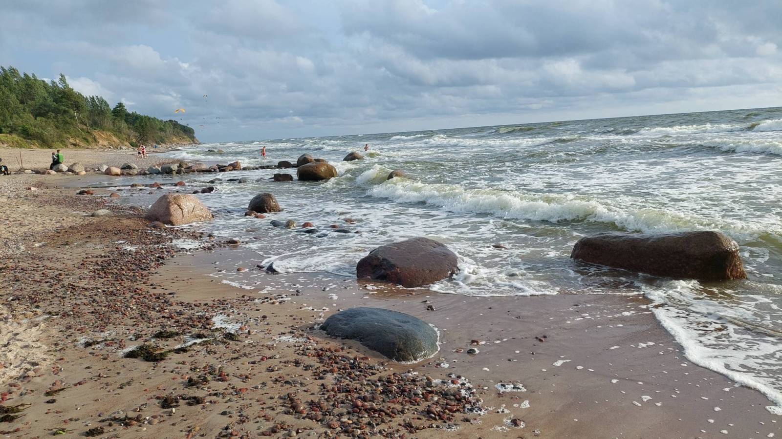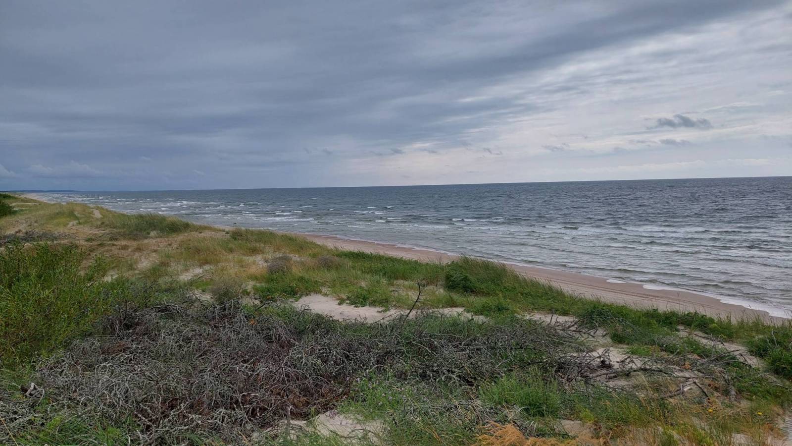 Dotarliśmy do głównego celu tej wyprawy, nad Litewskie wybrzeże Bałtyku. Kłaipeda wita nas ulewą. Po godzinie siedzenia na przystanku w południowej części miasta, przestaje lać więc ruszamy do centrum. Znowu leje więc kolejną godzinkę wykorzystujemy na obiad. Przeprawiamy się promem na Mierzeję Kurońską i docieramy na plaże, tu obowiązkowa kąpiel w morzu. Powrót do Kłaipedy ,objazd centrum miasta, zakupy i w drogę do Karkle gdzie mamy zarezerwowany nocleg. Reszta dnia i wieczór to relaks i regeneracja nad morzem.