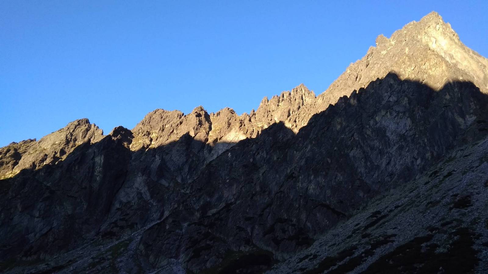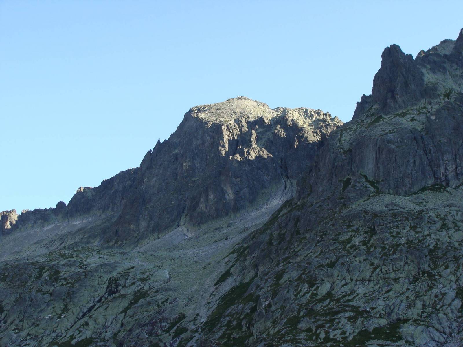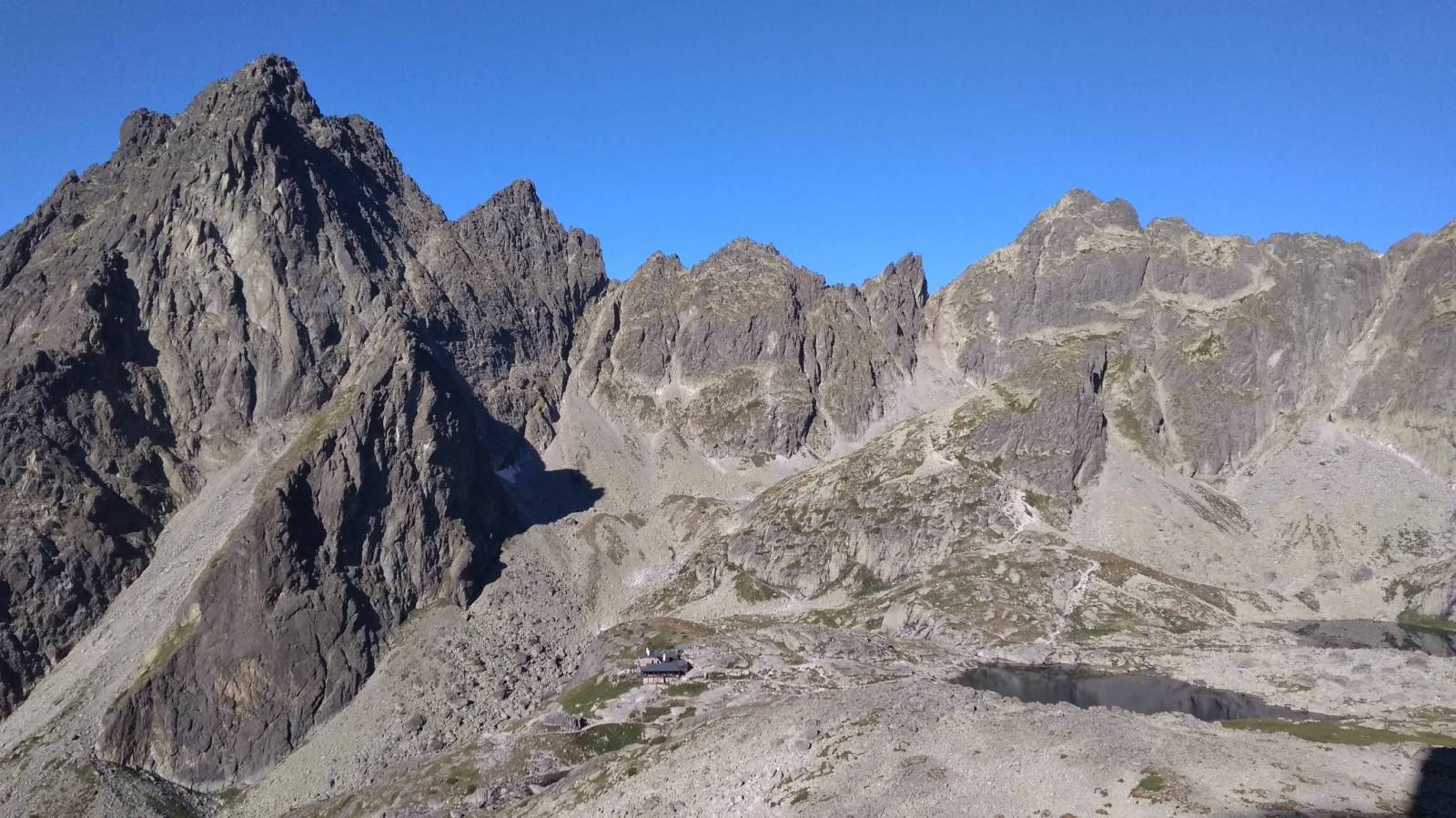 Nie wiem skąd padł pomysł na Jordankę, ale padł. Wycieczka zaczęła się już dzień wcześniej, gdyż postanowiliśmy przyjechać do Smokovca na wieczór i przespać się w aucie. Nie ma jak kombi. Rozłożenie siedzeń i śpimy wygodnie, ale w końcu czas wstawać. Na początek standard czyli Hrebienok. Dalej skróty do Zamkowskiego i tam chwila przerwy. Następnie atakujemy Chatę Teryego, gdzie zjemy bardziej obwity posiłek i rozpracujemy drogę. Po odpoczynku czas na wejście na Drogę Jordana i juz na początku weszliśmy w zły żleb. Na szczęście po jakimś czasie przeszliśmy pobliski grzbiet i trafiliśmy na odpowiednią drogę, która doprowadziła nas na Poślednią Przełęcz. Tam dłuższy odpoczynek, związanie się liną i atak grani. W wielu miejscach łańcuchy i klamry, które pomagają w zdobywaniu góry. Kilka miejsc lufiastych i kilka wymagających kombinowania czy większej siły. Po jakimś czasie docieramy do Komina Franza, który jest wąski i pnie się prawie pionowo do góry, jednak łańcuchy i klamry pomagają. Za nim już pozostaje łatwiejszy teren i na 30 metrów przed szczytem ukazuje się łatwa grańka, którą docieramy na szczyt. Na Łomnicy ponad godzina popasu. Wiadomo trzeba zrobić zdjęcia no i napawać się widokami. Ale najwyższy czas już zejść, co czynimy klasyczną drogą, czyli schodzimy do Łomnickiej Przełęczy a dalej do Skalnatego Stawu.