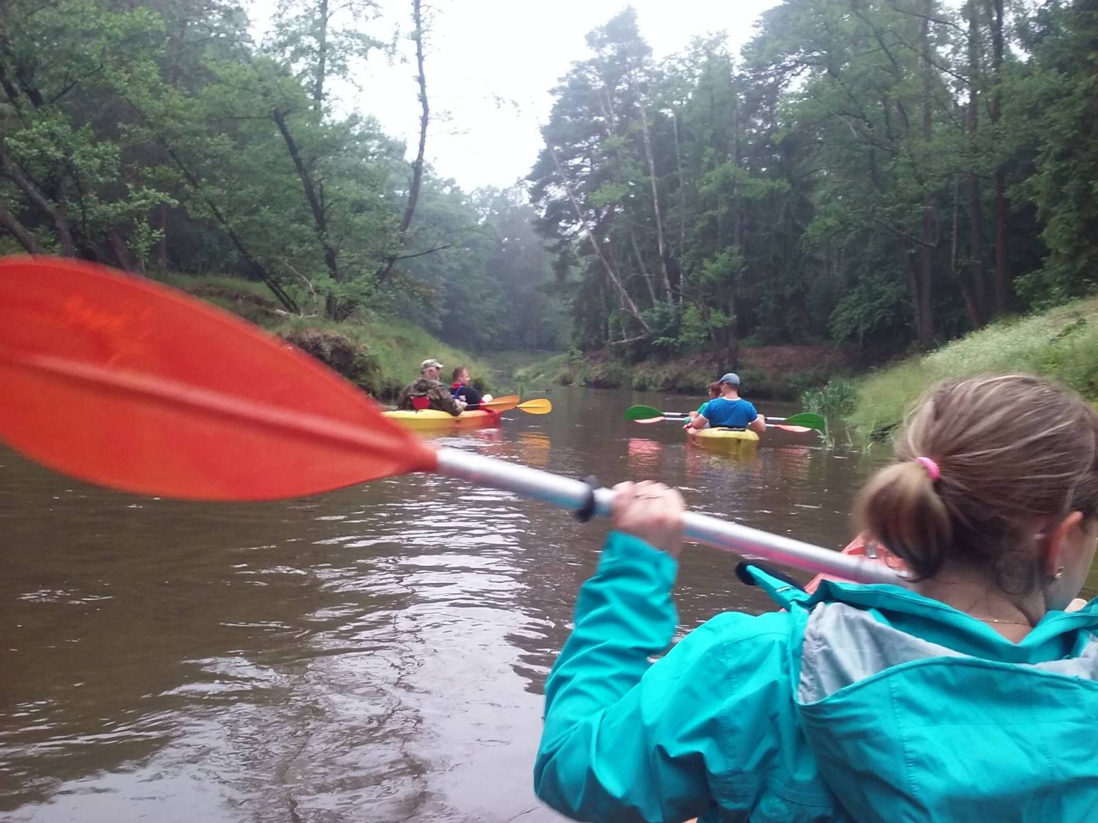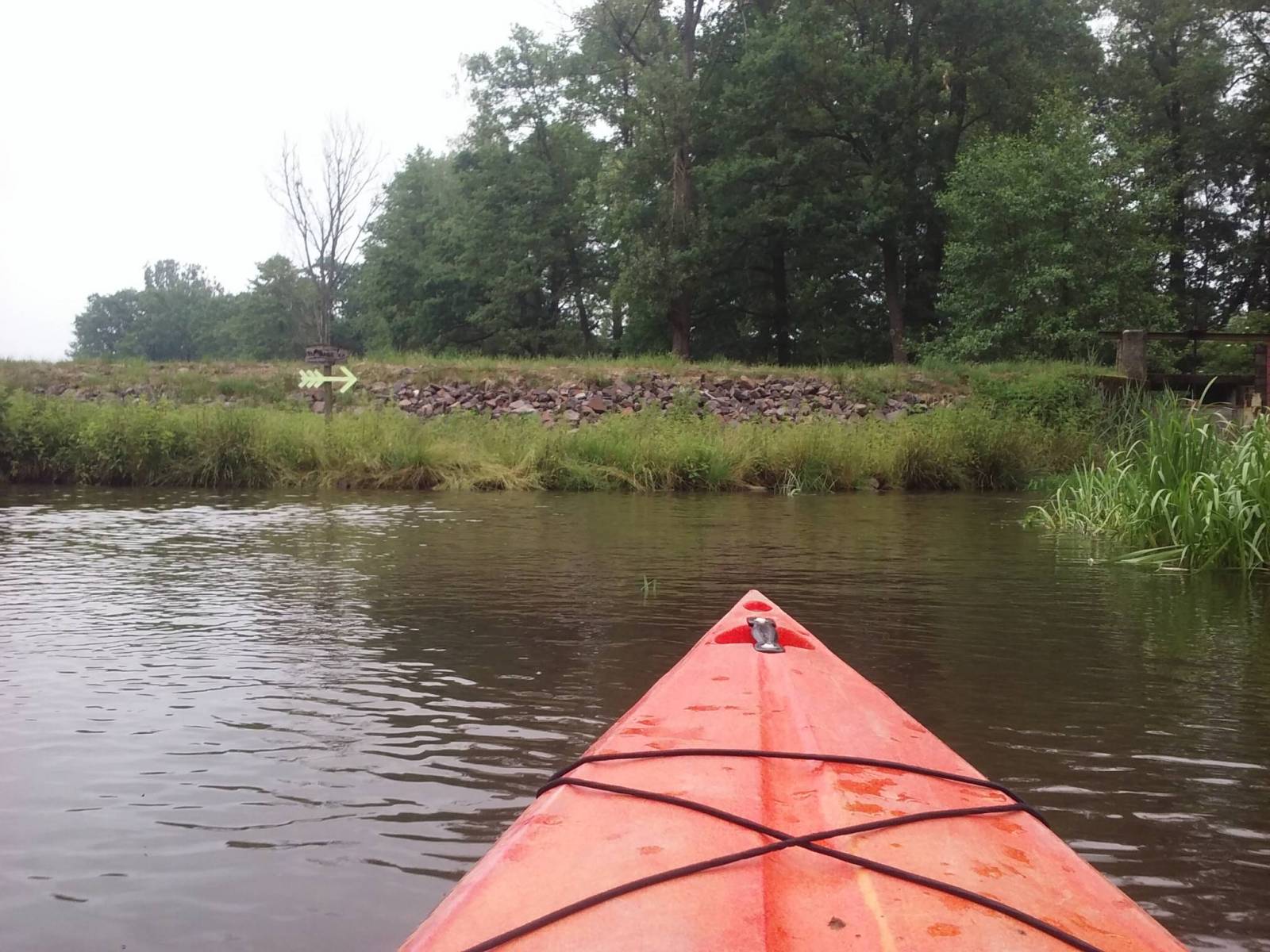 Następnego dnia czyli w niedzielę o 9 rano zaczynamy II etap naszego spływu ale w trochę mniejszym składzie bo tylko z 4 osadami.Początek spływu zaczynamy w Krupskim Młynie. Ten odcinek trasy jest jeszcze bardziej łagodniejszy niż ten wczorajszy choć też nie obyło się bez przeszkód jak np. obrucenie się i zawiśnięcie na pniu drzewa który był skryty w wodzie i nie bardzo było wiadomo jak z niego spłynąć ale na szczęście po chwili strachu ponieważ było tam dość głęboko bo prawie całe wiosło znikło pod wodą udało się odepchnąć od brzegu i spłynąć dalej.Ten odcinek także był bardzo zielony i czuło się tą dzicz dookoła.Meta II etapu kończyła się już przy polu namiotowym w Żędowicach.Pogoda już była bardziej stabilna ale bez słońca bardziej zbliżająca się na deszcz.Pokonany dystans II etapu to 9,5 km w 3 godz.