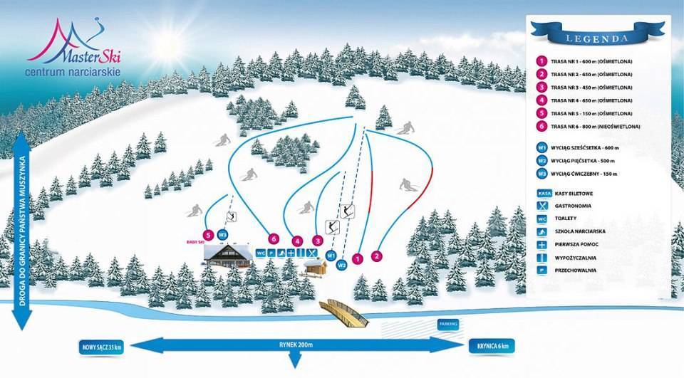 "Master-Ski Centrum Narciarskie jest rodzinnym, nowoczesnym ośrodkiem narciarskim położo­nym na północnych stokach w samym centrum Tylicza na wysokości 680m n.p.m. Stacja dysponuje trzema nowo­czesnymi, wygodnymi i bezpiecznymi wyciągami, wypo­życzalnią, szkołą narciarską, bezpłatnym parkingiem oraz regionalną karczmą."