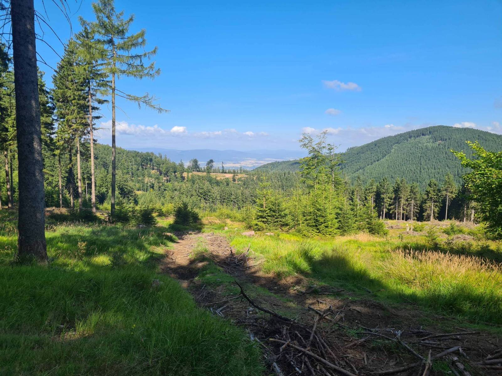 Dziś w odwiedziny do Międzygórza . Jest końcówka długiego sierpniowego weekendu . Najpierw asfaltem na przełęcz Puchaczówka a potem niebieskim pieszym i różnymi szutrami do Międzygórza . Pomimo wczesnych godzin ruch na trasie całkiem spory a w Międzygórzu parkingi pozajmowane . Wracam asfaltowymi , bocznymi drogami przez Wilkanów i Idzików.