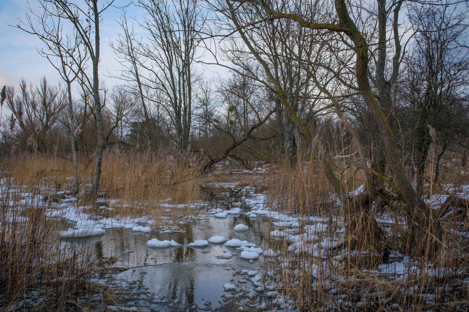 Wycieczka piesza z Mikoszewa do Jantaru. Po drodze Ujście Wisły, Rezerwat przyrody Mewia Łacha i trochę leśnych szlaków. Pogoda się zmienia, Wisła prawie zamarzła, wiatr od morza cofa wodę, plaża zamarzła. Mimo ocieplenia wiatr skutecznie zwiększa odczucie chłodu dzięki temu na plaży tłumów nie było. Warto skorzystać i posłuchać szumu fal.