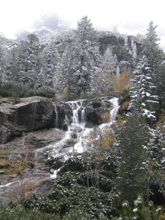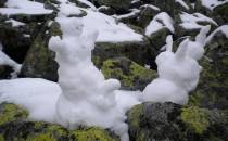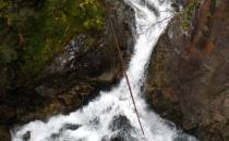 Następnie udaliśmy się dalej w górę nad Czarny Staw. Tutaj było już spokojniej, część turystów odpadła już w przedbiegach, na pierwszym etapie wspinaczki. Kamiennymi schodami pieliśmy się więc w górę. Tu spotkała nas kolejna nagroda w postaci kolejnych przepięknych widoków tym razem na Czarny Staw (teraz już wiem skąd ta nazwa :). Teraz muszę się przyznać, że ja chciałam wracać już na dół, a to dlatego, że krajobraz zaczął robić się coraz bardziej zimowy, a my mądrzy turyści mieliśmy na sobie tylko (no dobra, ja miałam) adidaski i skórzaną kurteczkę. Ale mój Misiekj był bardziej ambitny, chciał zdobyć Rysy. Niestety, albo stety, ja zazwyczaj daję się namówić na takie rzeczy. Obeszliśmy więc Czarny Staw i zaczęliśmy piąć się coraz wyżej i wyżej. A śniegu przybywało i robiło się coraz bardziej ślisko :/ W końcu pod wpływem wg niektórych mojego marudzenia, a wg mnie dzięki resztce mojego zdrowego rozsądku zaprzestaliśmy dalszej eskapady. Kawałek jednak się wspięliśmy – na tyle, aby zobaczyć coś cudownego - jak Czarny Staw spływa w Morskie Oko – jeden staw a tuż pod nim drugi. Przepiekany, niezapomniany widok.