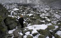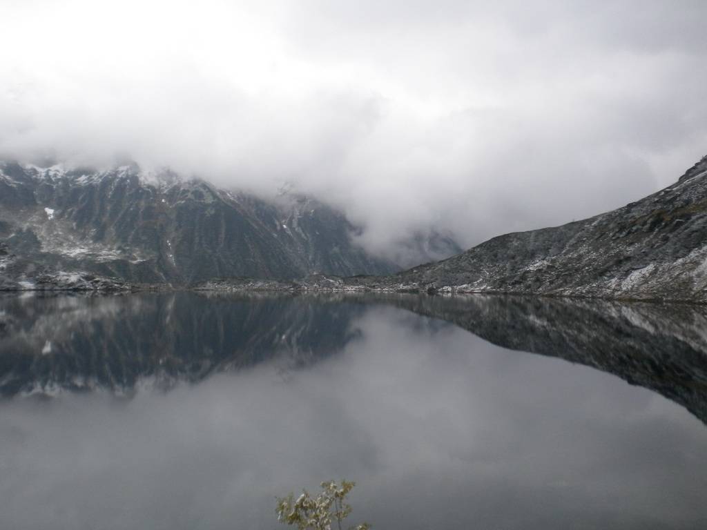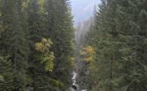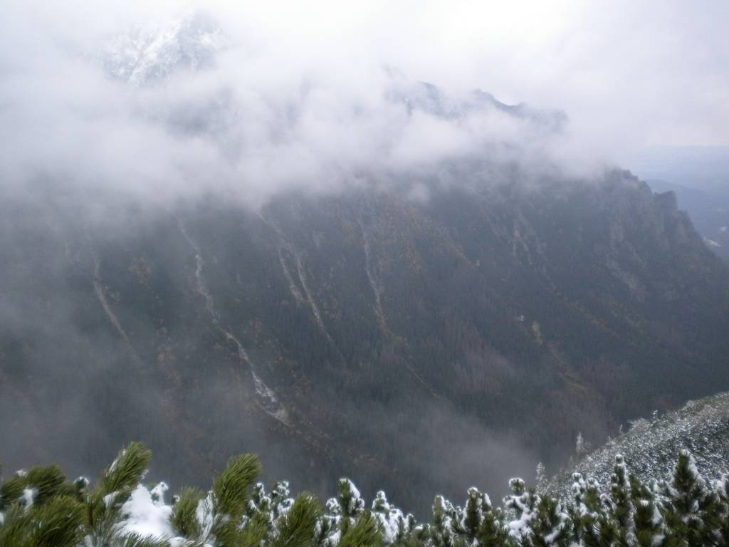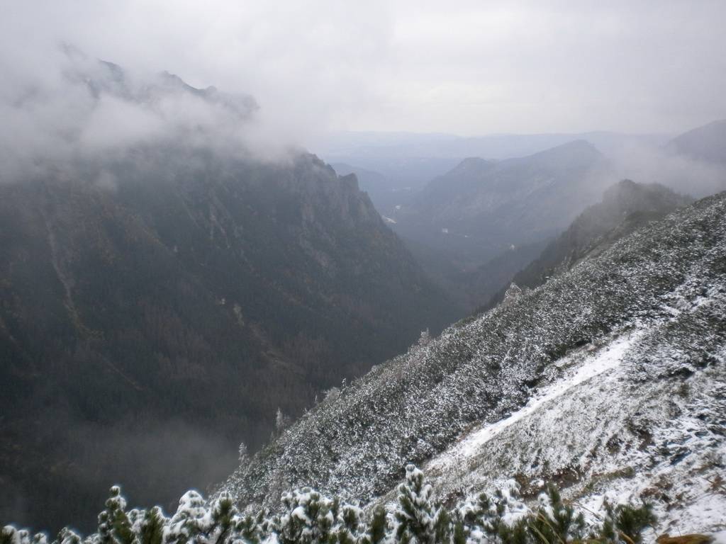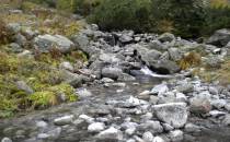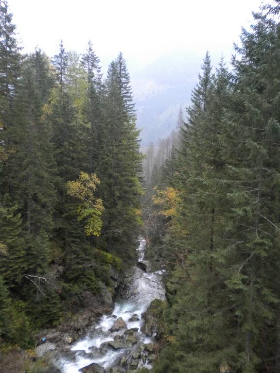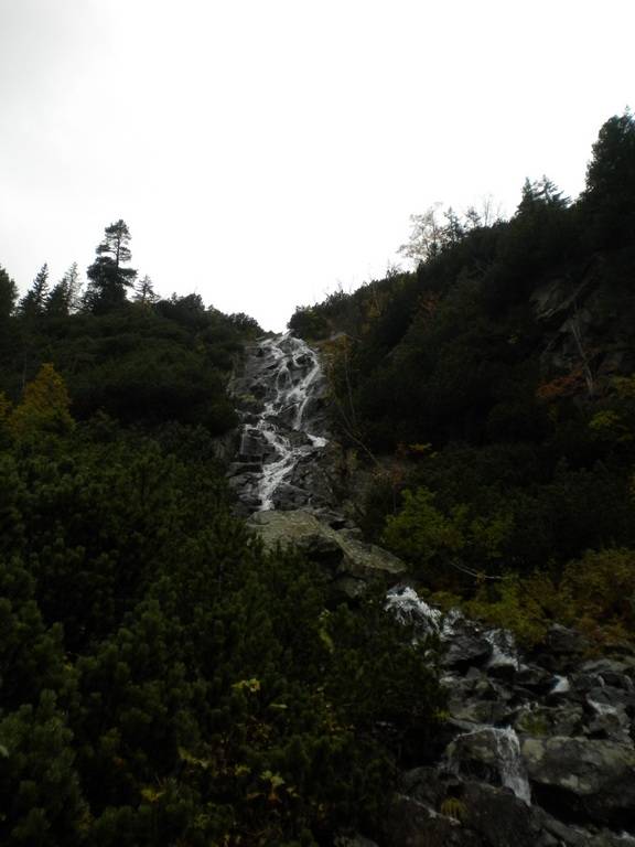 W październiku dni już nie są takie długie, a godzina była już późna. Dlatego zaczęliśmy się kierować z powrotem na dół. Obeszliśmy Czarny Staw i Morskie Oko z drugiej strony, po czym...zobaczyliśmy szlak, który prowadził przez Dolinę Pięciu Stawów. Eee to pikuś :) Zdążymy, raz dwa i wszystko obejdziemy. No więc w górę! Piękne widoki, bardziej dzikie, ścieżki mniej wydeptane, trudniejsze przejścia i ludzi praktycznie nie było. Idziemy, idziemy a żadnego stawu nie widać. Tylko coraz bardziej ciemno. Dotarliśmy na jakiś szczyt – skalisty, zimny, gdzie dalej iść ciężko stwierdzić, bo ścieżki nie widać, w ogóle coraz mniej cokolwiek widać. Zawrócić, to bez sensu, za daleko zaszliśmy. Idziemy więc dalej, na wprost. I w końcu jest kolejny staw, a nawet drugi. Zapewne piękne, jednak było już dość mroczno i coraz bardziej wszystko zaczęło przypominać czarną otchłań. Dlatego też postanowiliśmy zrezygnować z pozostałych stawów i Doliną Roztoki wrócić na dół. W zasadzie już prawie biegnąc, aby zdążyć przed nocą i zamknięciem parkingu, dotarliśmy na dół. Po drodze mijaliśmy już tylko jedną parę, która jednak wyglądała bardziej profesjonalnie pod względem ubioru od nas.