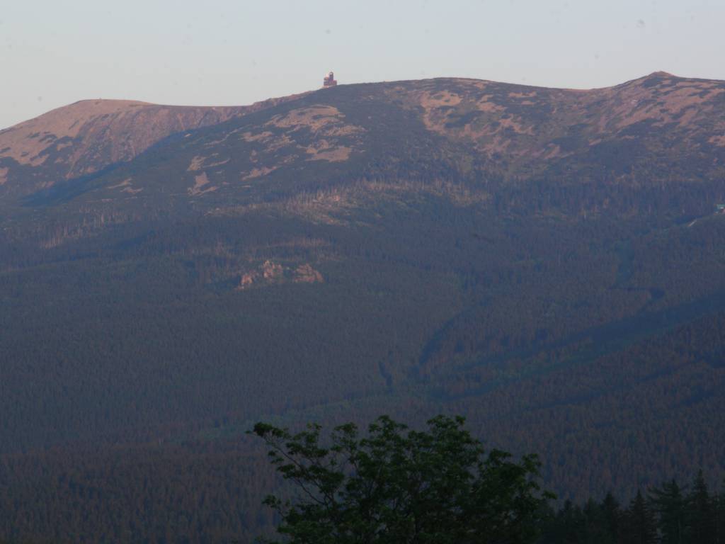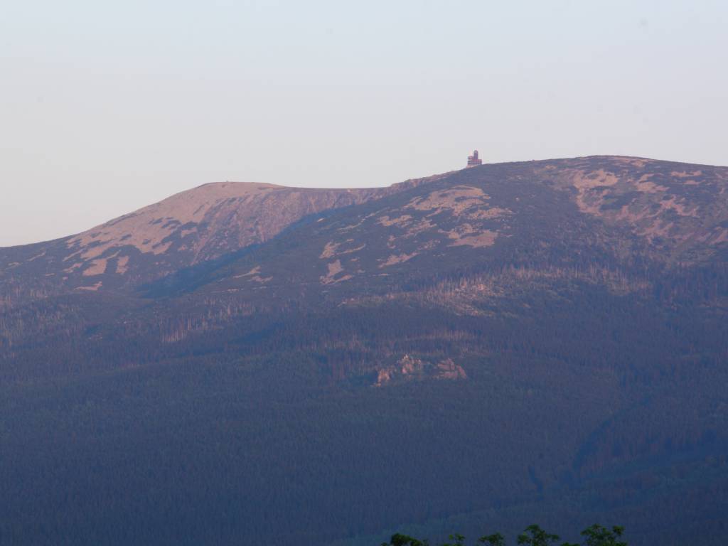 Taka widokowa trasa po okolicy, na zachód słońca z widokiem na Szrenice i śnieżne kotły