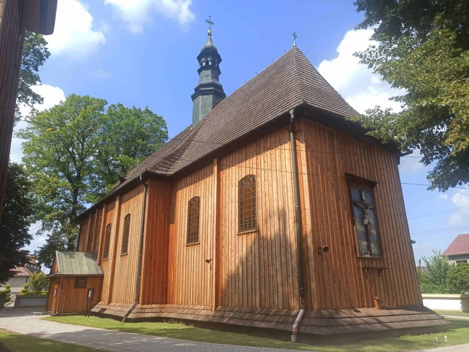 Pomimo panującego upału zdecydowałem się na kolejną wycieczkę, tym razem w okolicy Puszczy Niepołomickiej. Pierwsza część wycieczki, ta zdecydowanie dłuższa przebiegała jednak po odkrytym terenie, najpierw wzdłuż Wisły a od Uścia Solnego do Bochni wzdłuż Raby. Po chwilowym pobycie w Bochni podróż odkrytym terenem kontynuowałem do Damienic skąd już, z małym wyjątkiem na wysokości Kłaja, do końca wycieczki jechałem przez Puszczę Niepołomicką. Podczas jazdy po odkrytym terenie, wystawiony byłem na działanie słońca i wysokiej temperatury. Zamontowany do roweru licznik wskazywał nawet 37 stopni. Nie wiem na ile wiarygodne były te wskazania, nie da się jednak ukryć że ciepło było. Chcąc sobie ulżyć dwukrotnie skorzystałem z nawilżania, raz korzystając z kranu przy cmentarzu w Krzyżanowicach a drugi raz wykorzystując rozpylaną mgiełkę wodną na Rynku w Bochni. Początkowo nie planowałem pobytu w Bochni jednak będąc w jej okolicy chciałem zobaczyć znajdujący się w niej cmentarz żydowski, o którym niedawno czytałem. Cmentarz ten jest ponoć jednym z najlepiej utrzymanych w Małopolsce jednakże nie udało mi się tego potwierdzić, gdyż zamknięte bramki w ogrodzeniu skutecznie to uniemożliwiły. Opuściłem więc Bochnię bez zbytniego kluczenia i po dotarciu do Damienic zanurzyłem się w Puszczę Niepołomicką. W puszczy temperatura może nie była niższa ale rosnące po obu stronach dróg i ścieżek drzewa dawały przynajmniej ochronę przed piekącym słońcem. Podczas podróży przez puszczę, podobnie jak podczas wcześniejszych etapów wycieczki wzdłuż Wisły i Raby, poruszałem się głównie po asfaltowej nawierzchni. Z dróg gruntowych korzystałem jedynie przez kilka ostatnich kilometrów a konkretnie od Wężowego Stawu. Drogi, którymi się poruszałem generalnie były płaskie między innymi dlatego, że większości trasy przebiegała wzdłuż rzek. Na dobrą sprawę jedyne wzniesienia znajdowały się w Bochni a najbardziej stromy podjazd prowadził do cmentarza żydowskiego.