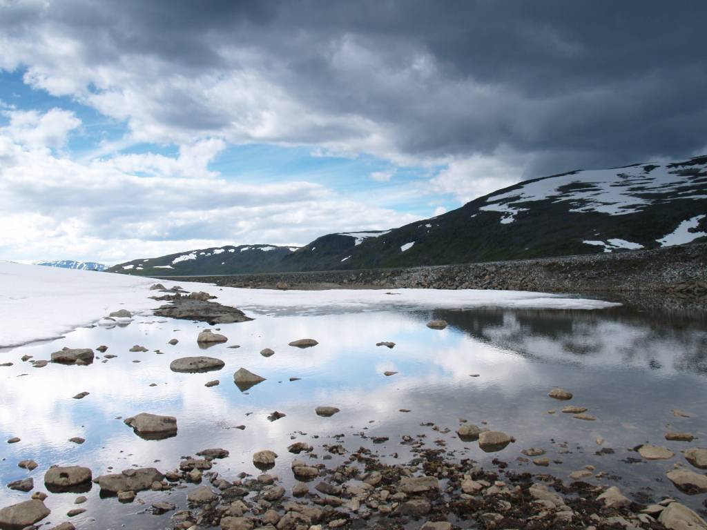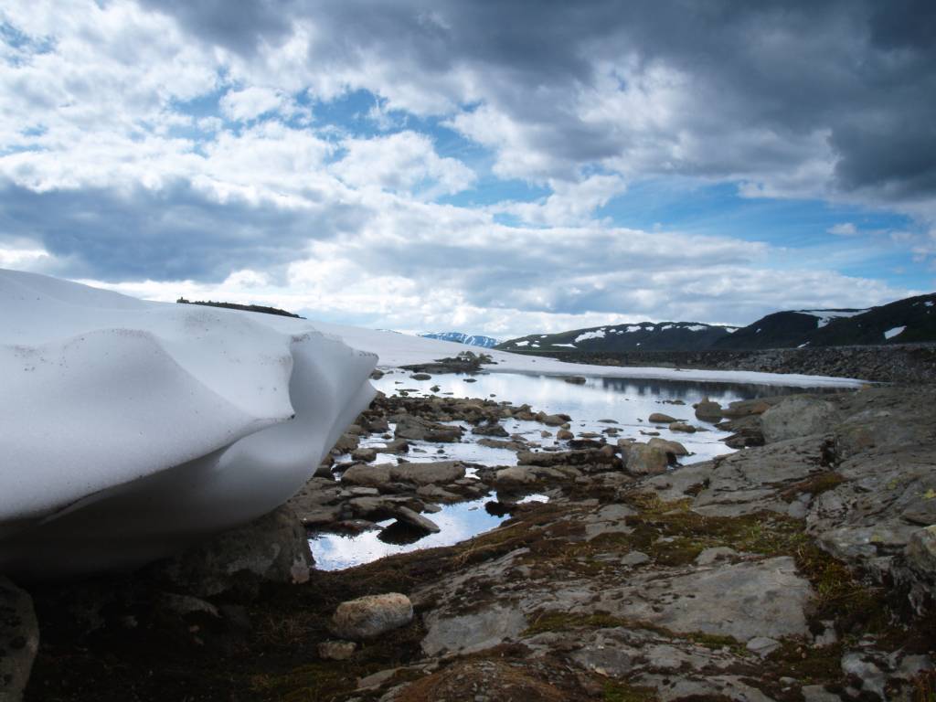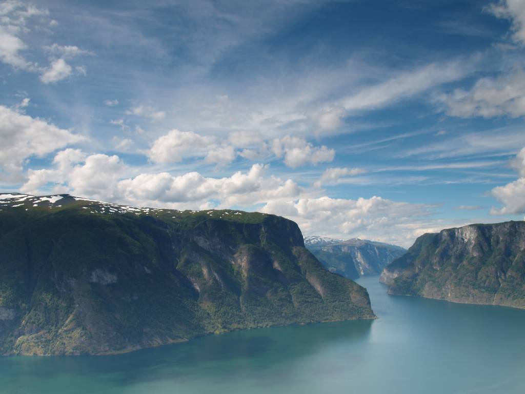 Z Eidfjordu ruszyliśmy dalej na północ, mieliśmy czas. Na przeprawie promowej Hardangerbrua na mapie widnieje most. W 2007 roku go nie było i płynęliśmy promem. Dużą część trasy pokonywaliśmy po raz drugi. Patrząc na to z perspektywy czasu, trochę szkoda, ale wtedy liczył się czas i to, żeby dotrzeć jeszcze tego samego dnia na lodowiec. Tak, bo kierowaliśmy się na Jostedalsbreen - największy lodowiec Europy. Żeby nie było nudno, zrezygnowaliśmy z przejazdu największym wtedy (i chyba nadal) śródlądowym tunelem w Europie (ok. 24 km) na rzecz przejazdu Snowwegen, czyli trudną trasą przez góry. Ale było warto. Zobaczyć Aurlandsfjord ze Stegastein to jedno z najcudowniejszych przeżyć wizualnych w życiu. Tego dnia również spaliśmy na dziko, tym razem wybraliśmy bardzo ustronne miejsce nad samą wodą.