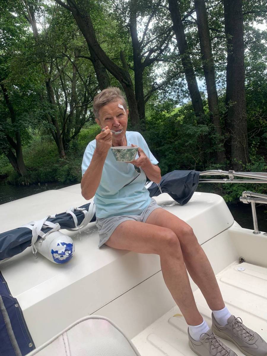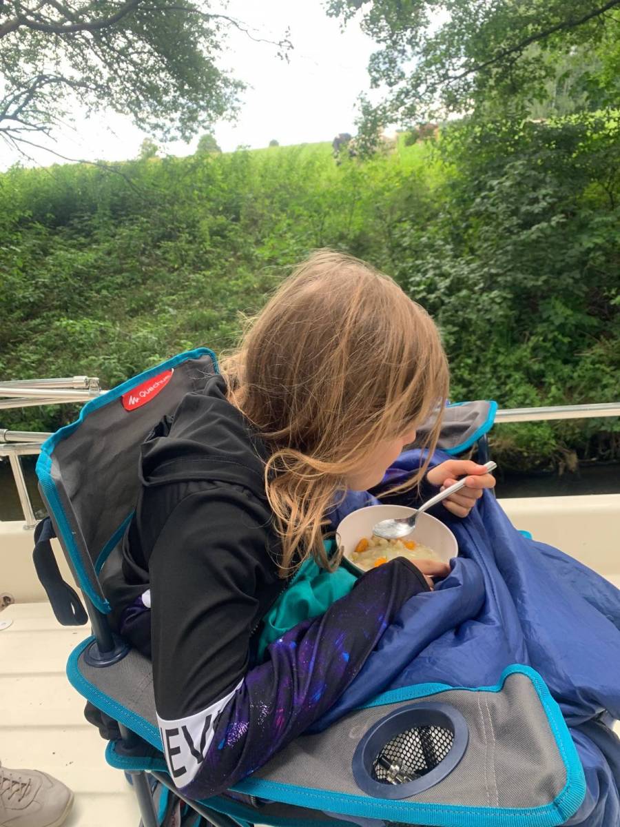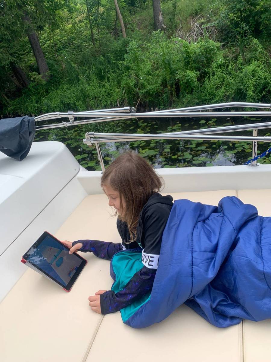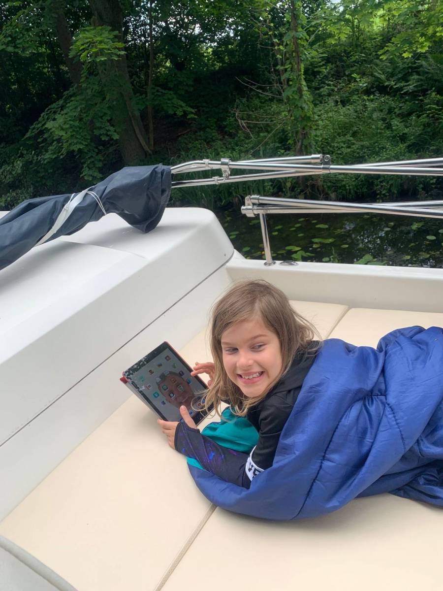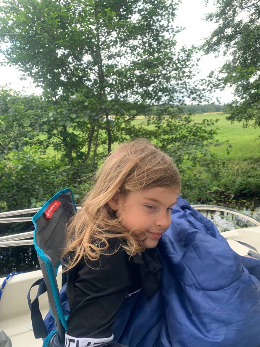 Wycieczka Siemiany Miłomłyn. Płyniemy przez Ostródę do Starych Jabłonek. Uczestniczy Gość Honorowy, wnuczka Sonia
