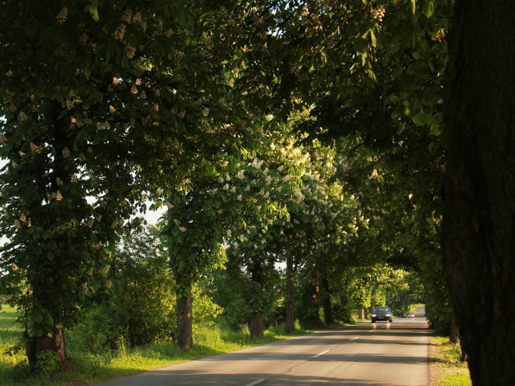 Majowa objazdówka bocznymi drogami. Pięknie kwitły kasztanowce.