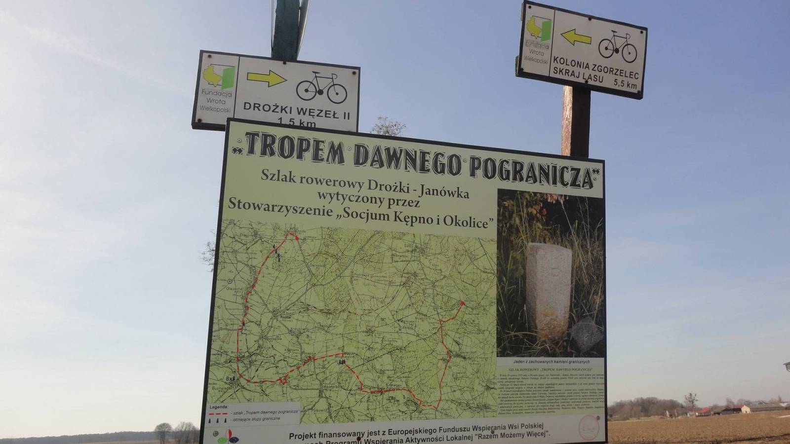 Mapa została wykonana w ramach projektu „E-bike nowoczesna turystyka” współfinansowanego ze środków Europejskiego Funduszu Rozwoju Regionalnego oraz ze środków budżetu państwa. „Przekraczamy granice”.