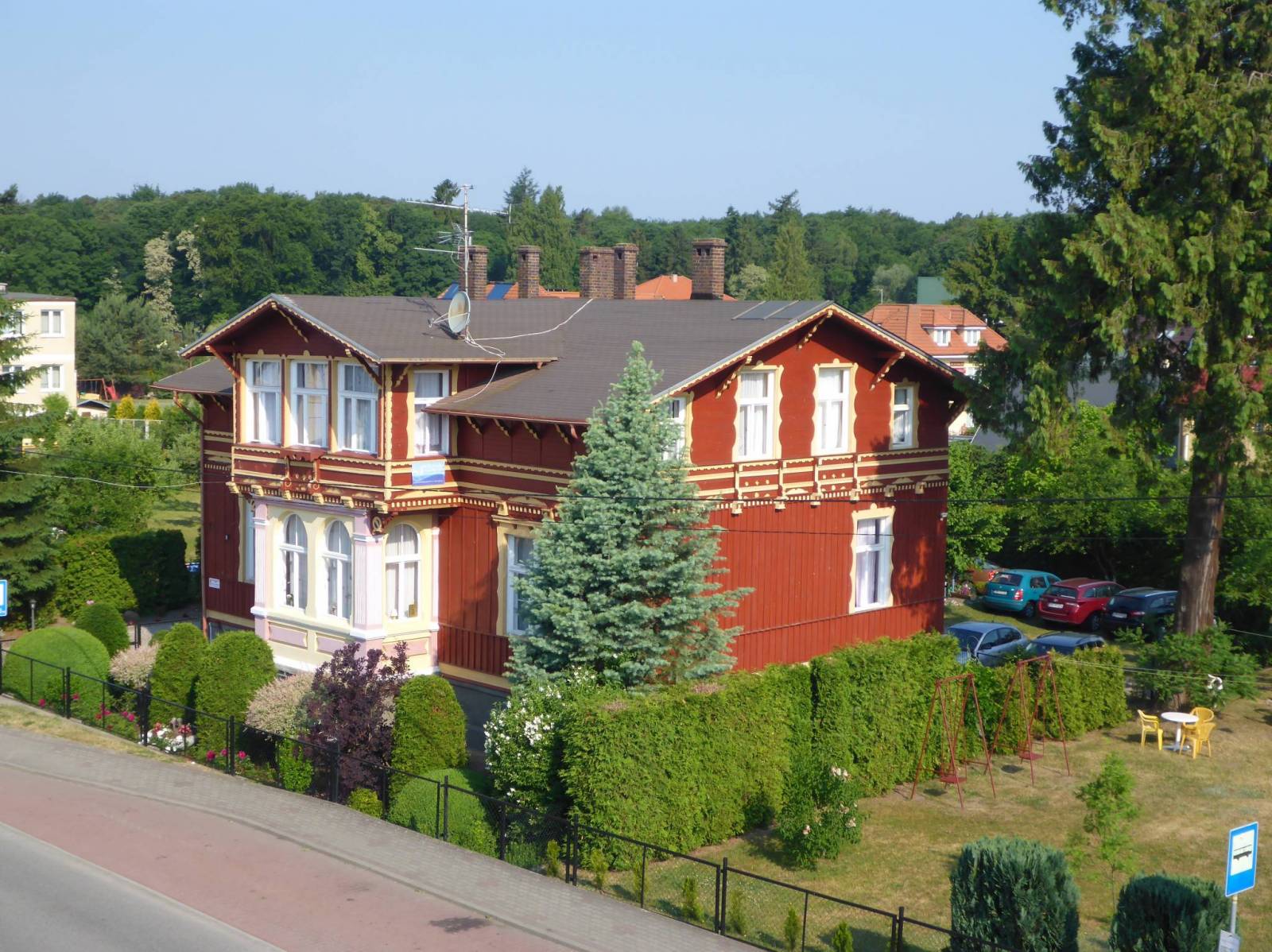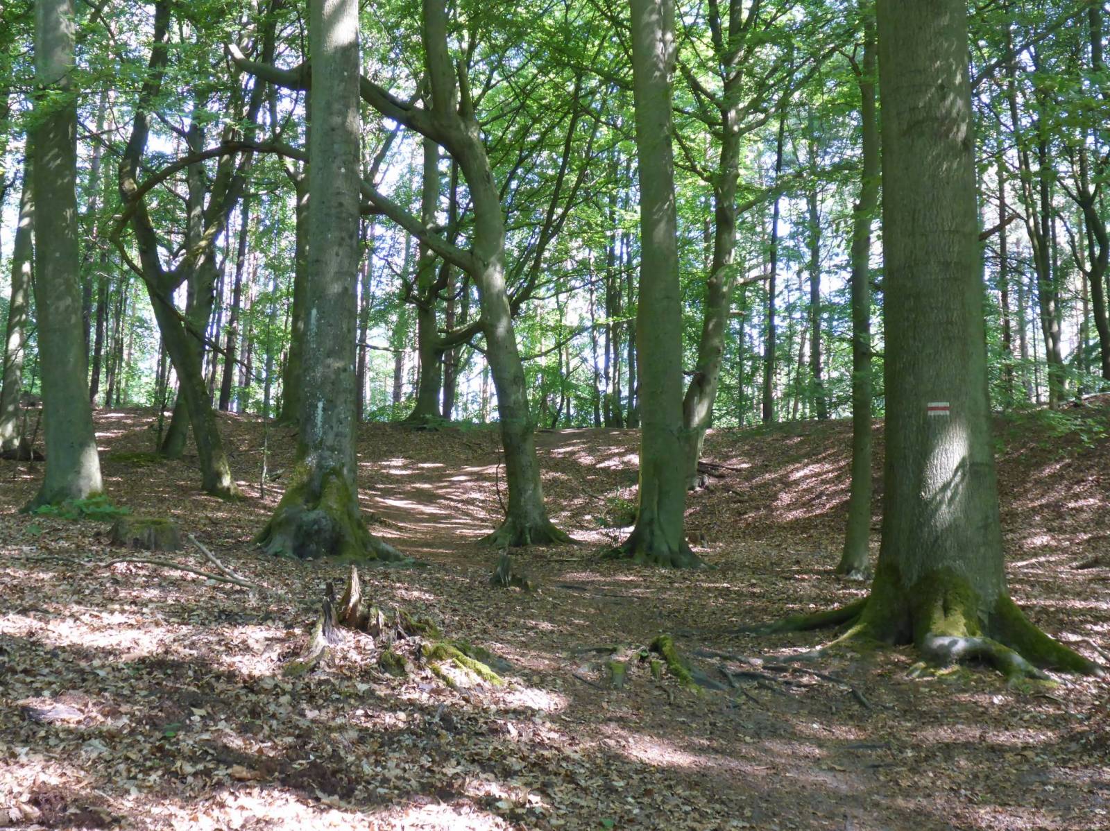 krótka przejażdżka po najbliższej okolicy Wisełki. Do Kołczewa poprowadzi nas dobrze oznakowany szlak pieszy czerwony. Okolice latarni morskiej Kikut aczkolwiek bardzo urokliwe wymagają roweru terenowego oraz minimalnej choć zaprawy (lub determinacji). Strome podjazdy i wystające korzenie drzew utrudniają jazdę a i tak w końcu czeka nas wnoszenie roweru po schodkach do latarni. Obok niej jedyne bodaj na trasie zadaszone miejsce do odpoczynku. Za latarnią przejedziemy pięknym lasem bukowym przez rezerwat przyrody im. S. Jaracza ale dziwnym zwyczajem rezerwaty przyrody są w Wolińskim Parku Narodowym całkowicie nieoznaczone w terenie. W Kołczewie neogotycki kościół św. Katarzyny z lat 1857-83. Powrót przez jeziora warnowsko-kołczewskie. Korzystałem z dwóch map: Wyspa Wolin. Mapa atrakcji (Galileos, 1: 45 000) oraz Wolin. Uznam (Cartomedia, 1: 50 000)