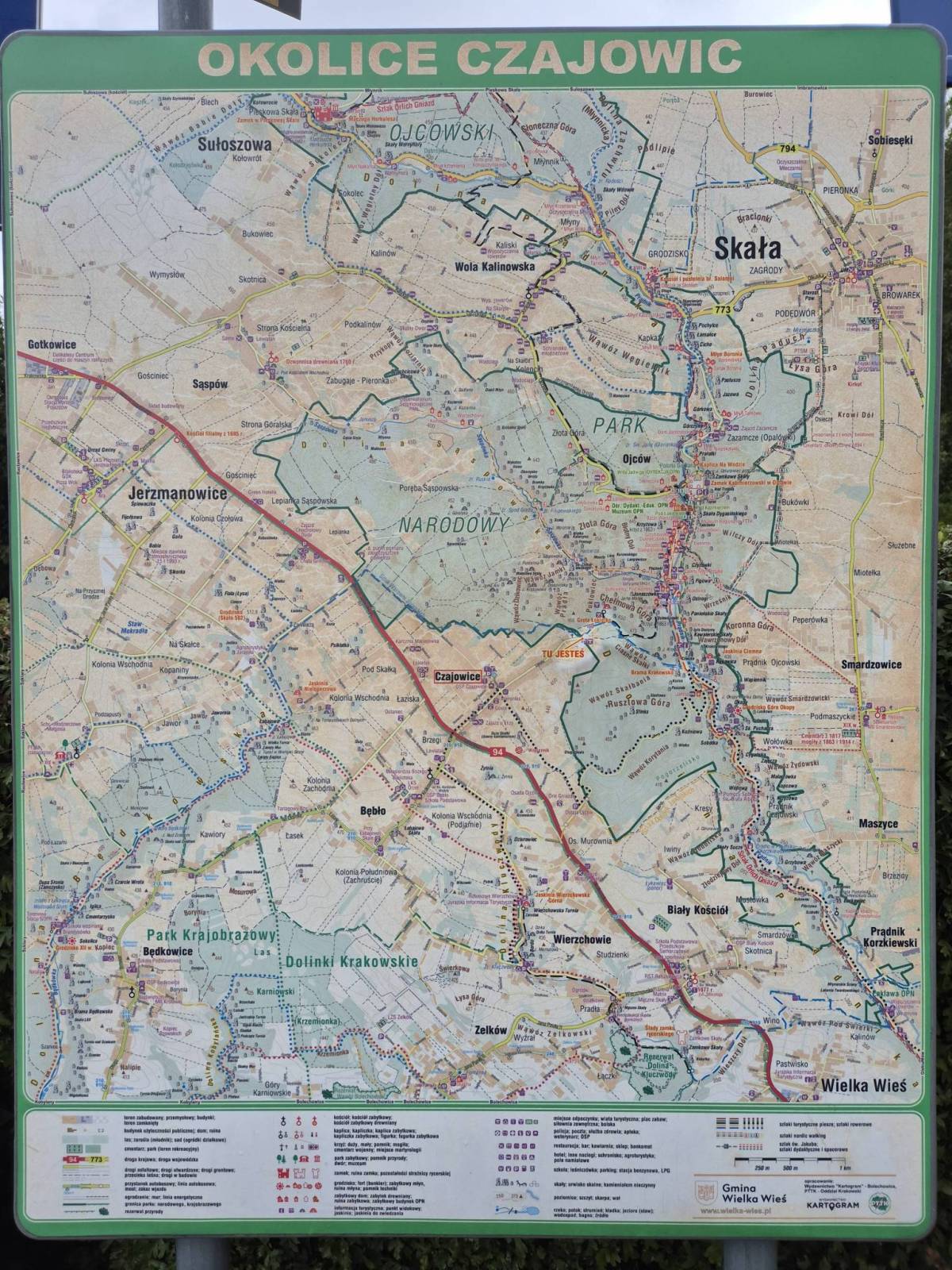 Mapa Jury Krakowsko-Częstochowskiej łączy Kraków z Częstochową a jej zasięg wyznaczają: Mstów na północy, Częstochowa i Trzebinia na zachodzie, Siewierz i Alwernia na południu oraz Kraków na wschodzie. Rok wydania 2024