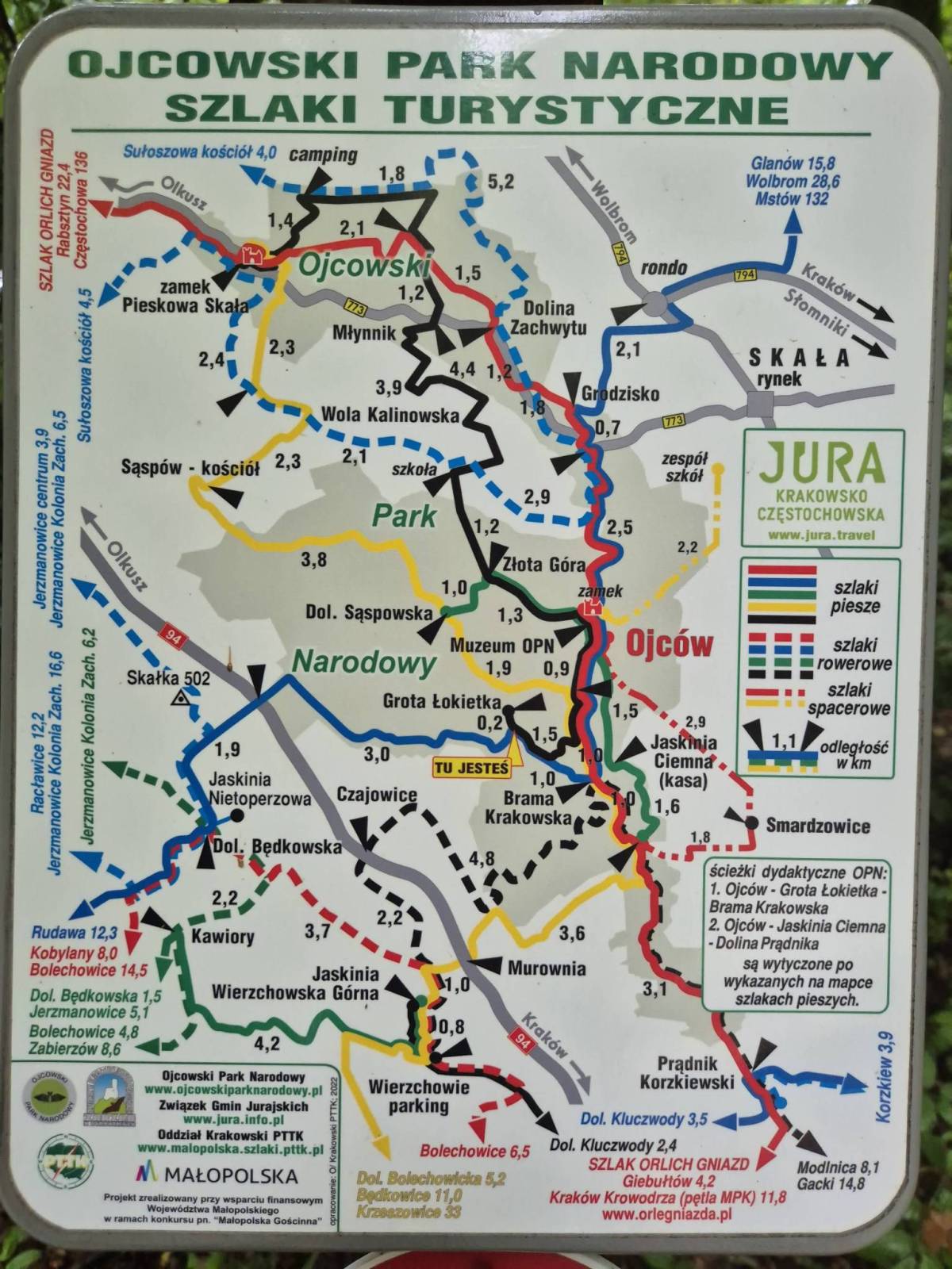 Mapa przedstawia atrakcyjne tereny turystyczno-rekreacyjne na północ od Krakowa. Obejmuje obszar Ojcowskiego Parku Narodowego (wraz z enklawami) oraz tereny przyległe (od Sułoszowej na północy do Modlnicy na południu oraz od Jerzmanowic na zachodzie do Skały na wschodzie). Ojcowski Park Narodowy jest najmniejszym spośród 23 parków narodowych w Polsce. Wyróżnia się zróżnicowaniem rzeźby terenu, malowniczym krajobrazem, bogatą szatą roślinną i światem zwierzęcym oraz licznymi zabytkami historii i kultury. Jest to teren idealny na piesze i rowerowe wycieczki. Na mapie poza typową treścią turystyczną zaprezentowano szczegółowe nazewnictwo skał i jaskiń. Rok wydania: 2023