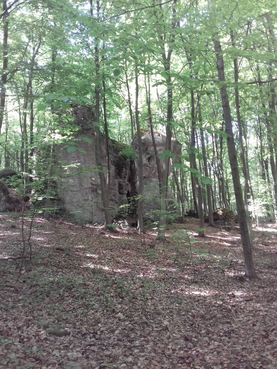 Spacer od parkingu przy restauracji Dworek Ostrężnik szlakiem niebieskim, potem chwilkę poza szlakiem (ale dobrze widoczną ścieżką) i szlakiem żółtym powrót na parking, przy okazji przejście po wzgórzu z ruinami zamku Ostrężnik, których nie udało nam się znaleźć :D fajny spacer, choć zdarzają się fragmenty piaszczystej i kamienistej drogi, niezbyt komfortowe.