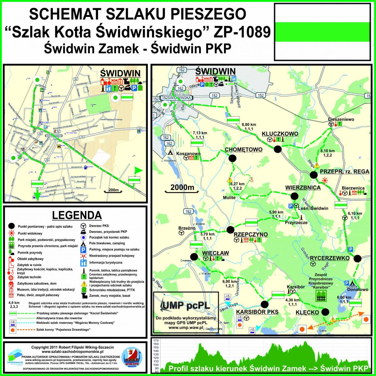 P-Z-ZSD/ZDR-070, szlak pieszy zielony, Swidwin Zamek - Świdwin PKP, 63,2km